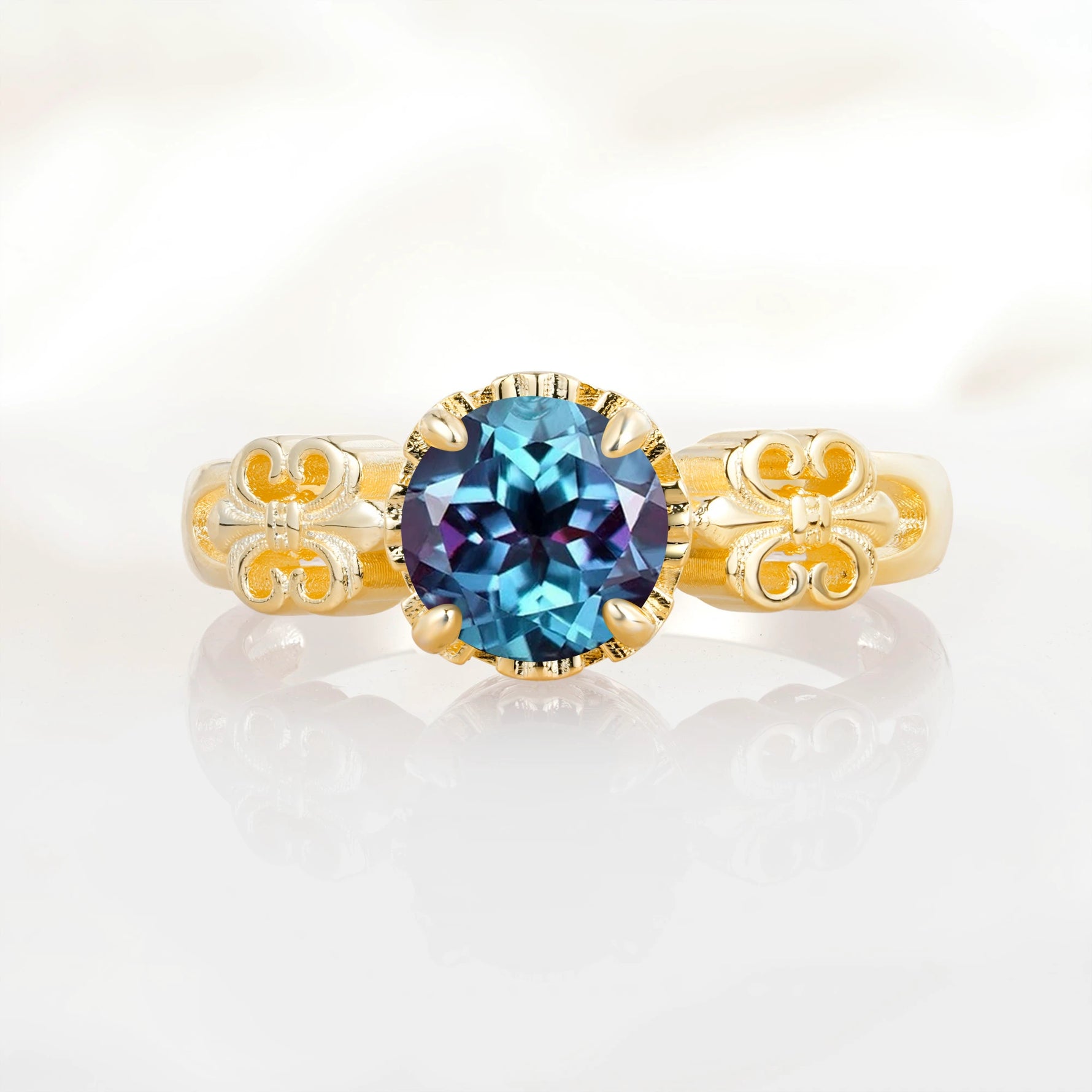 Vintage Round-Cut Alexandrite Engagement Ring