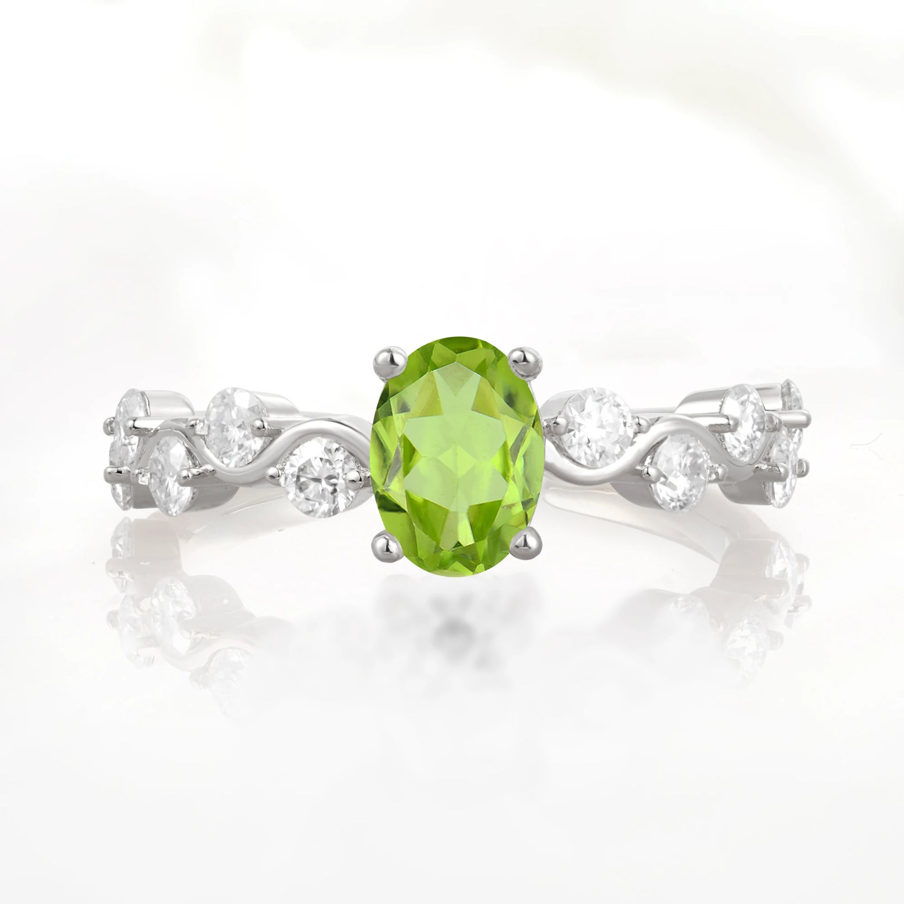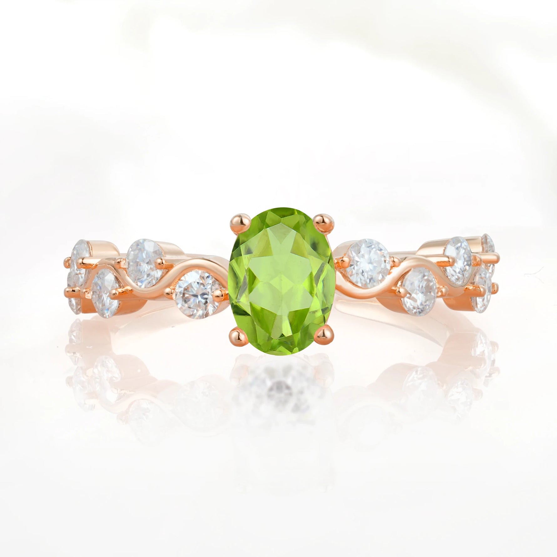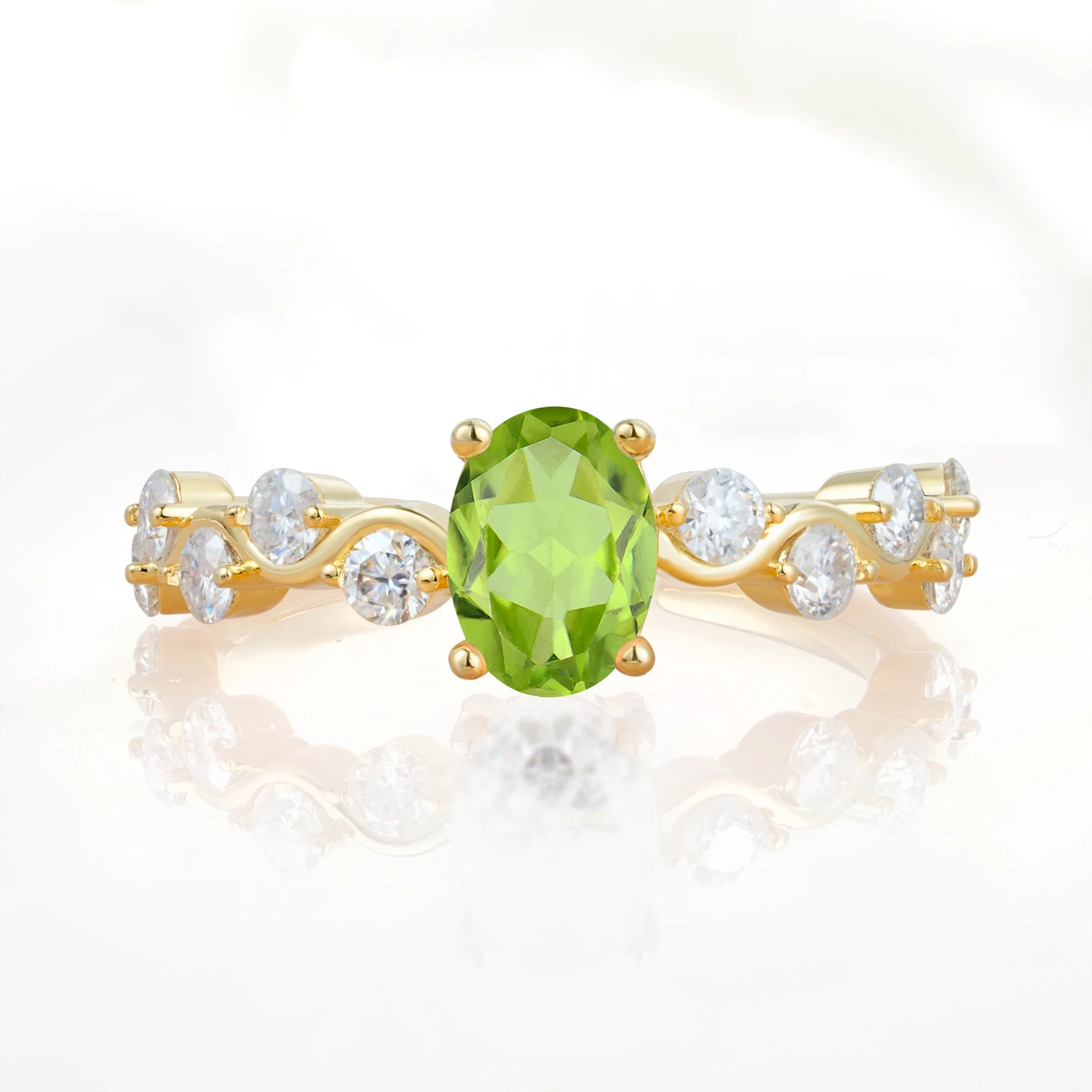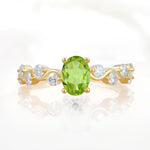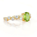 Unique Oval Peridot Ring with Pave Set Stones