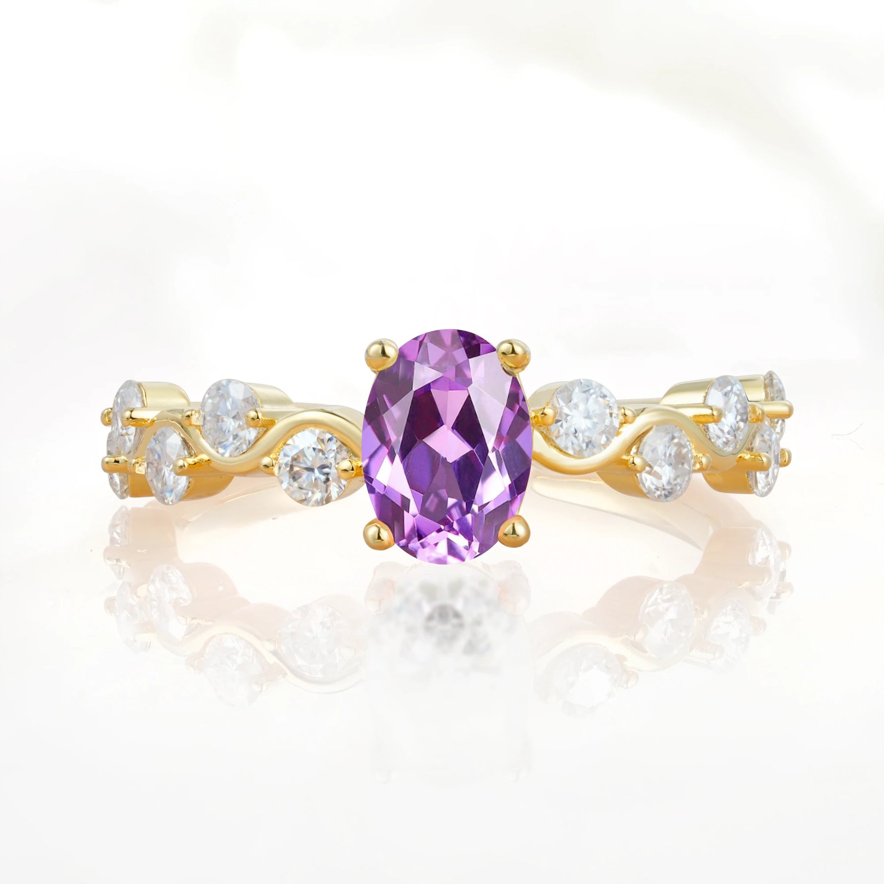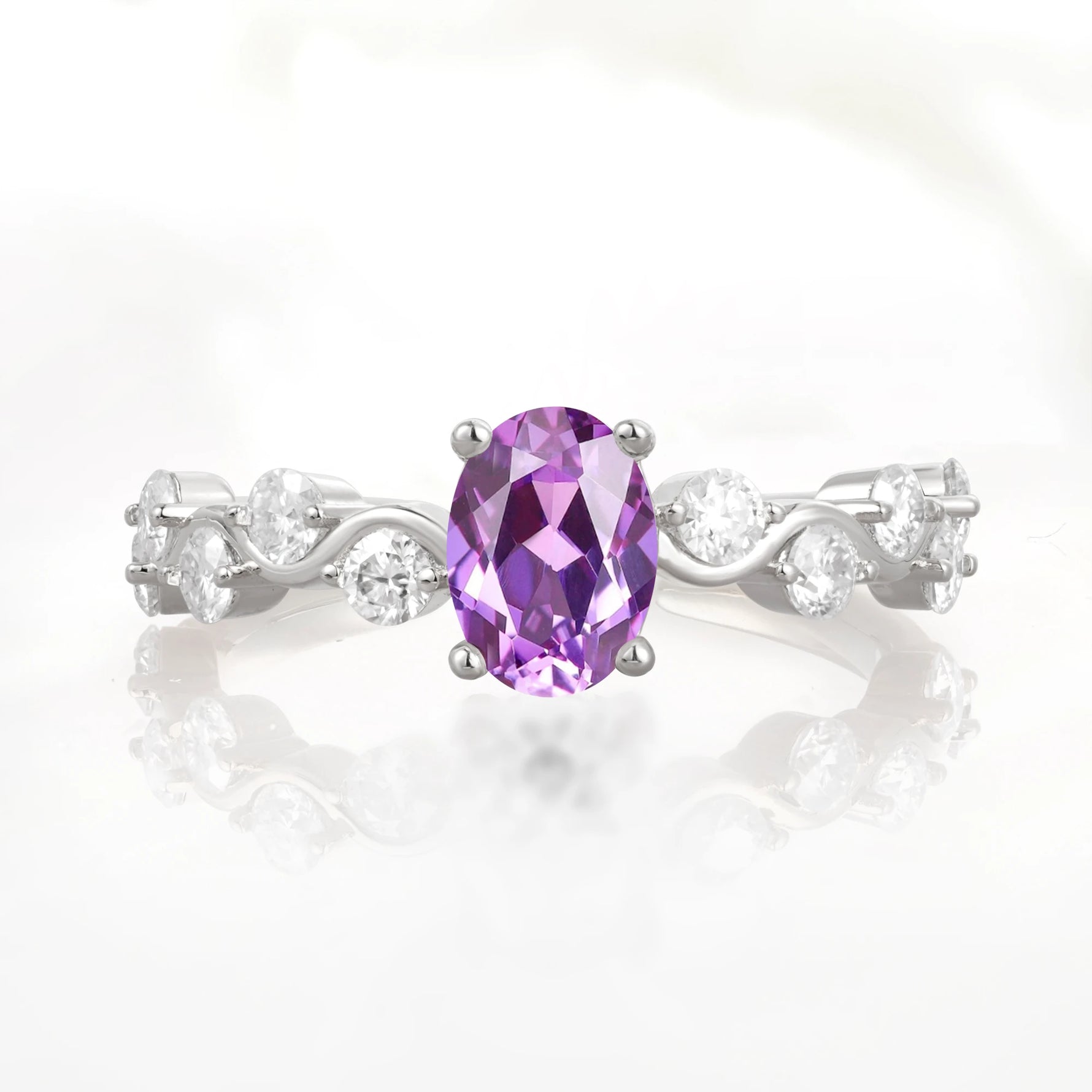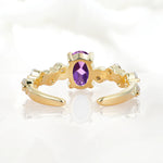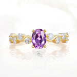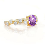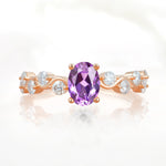 Unique Oval Amethyst Ring with Pave Set Stones