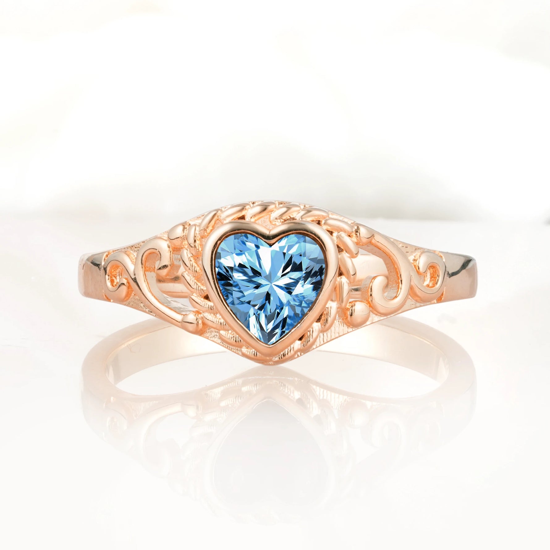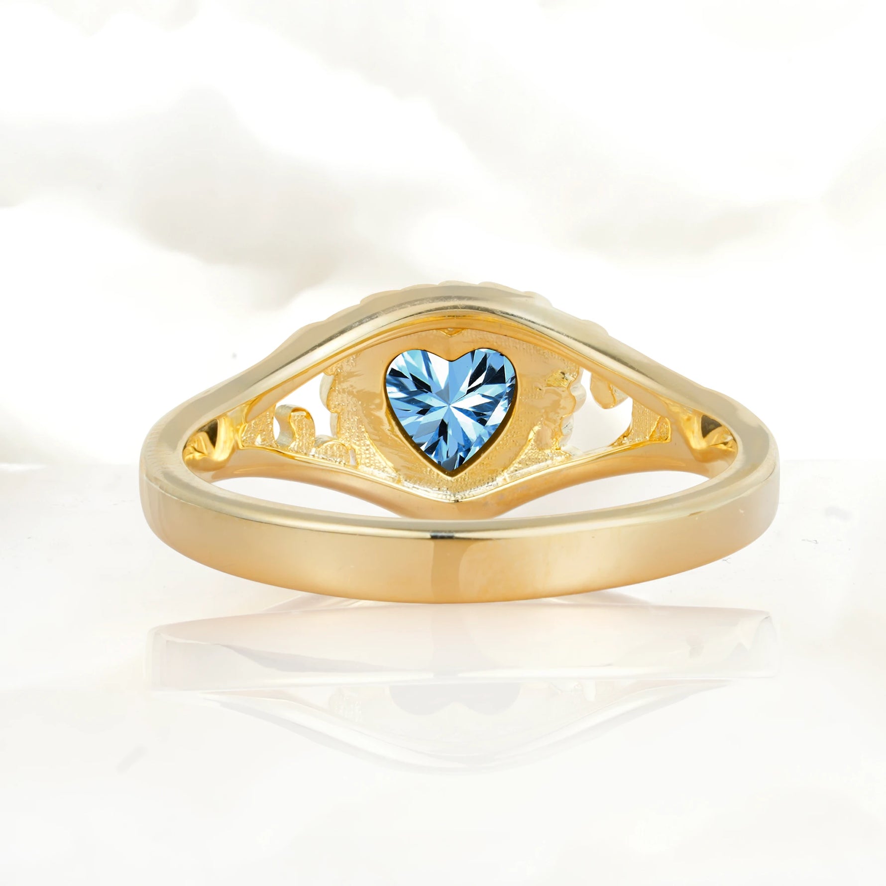 Heart-Shaped Aquamarine Engagement Ring with Intricate Band