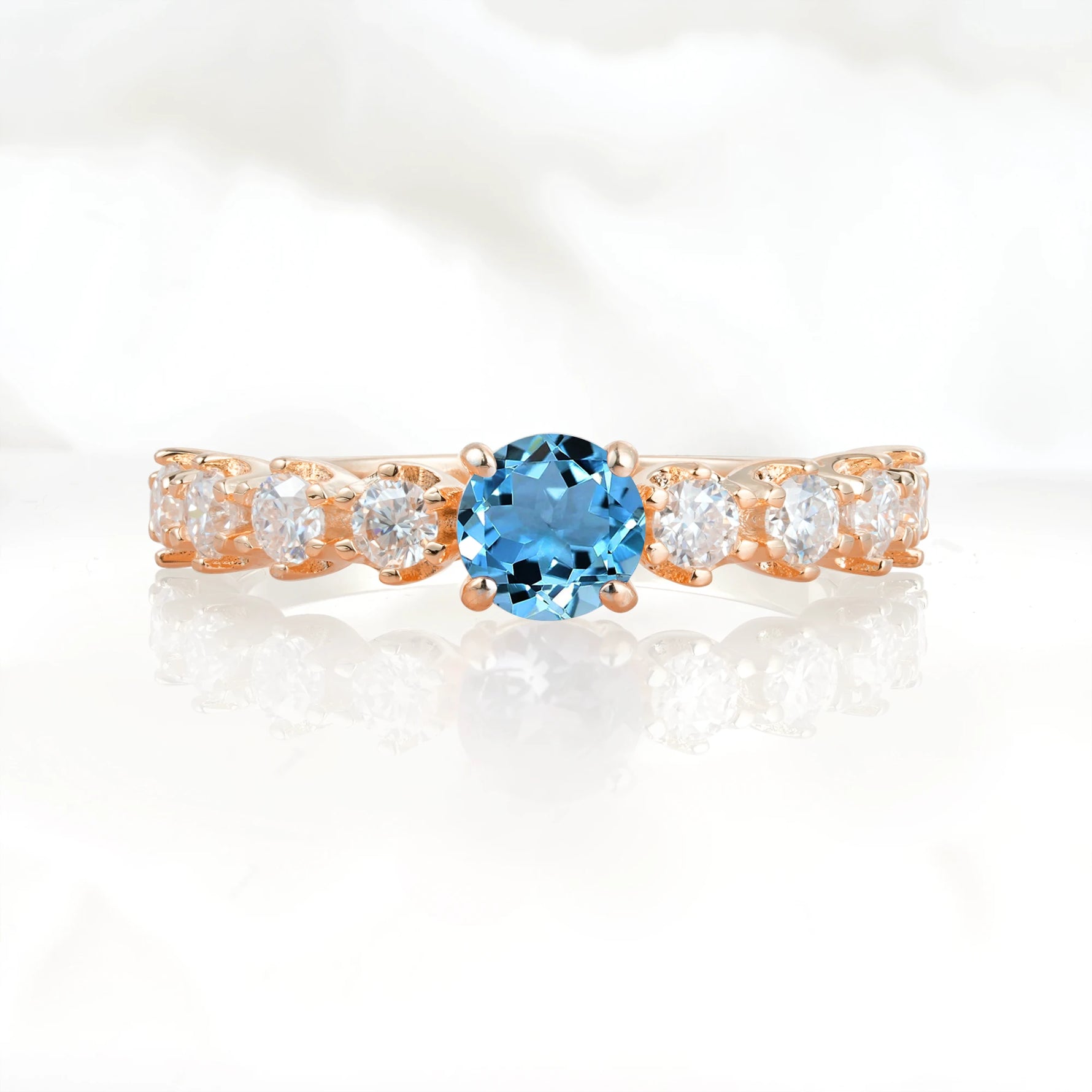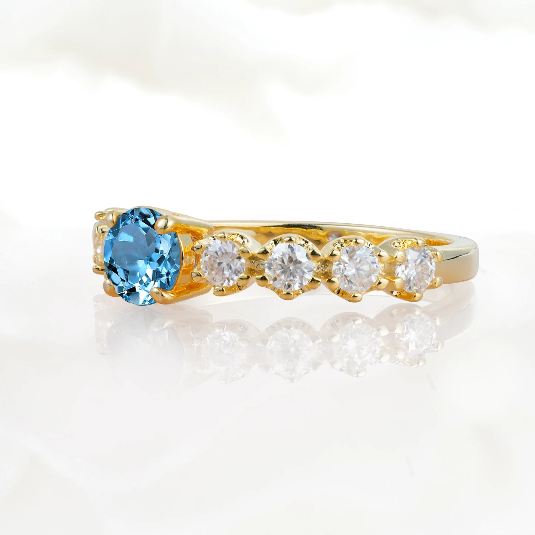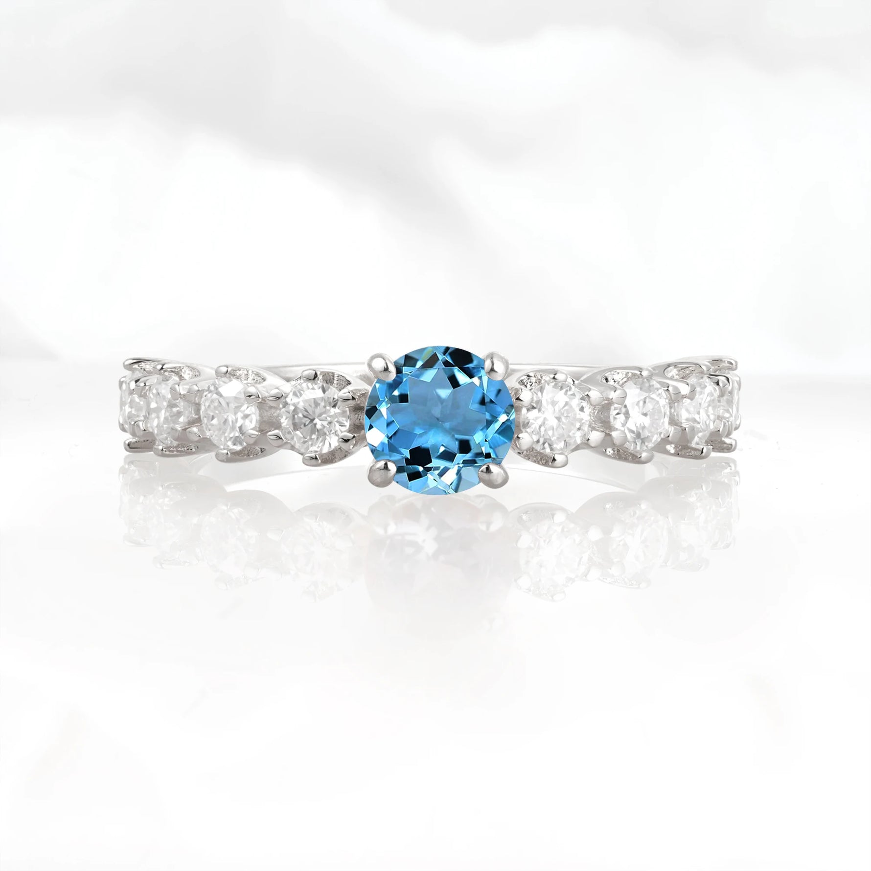 Classic Round-Shaped Aquamarine Ring for Proposal and Anniversary Gifts