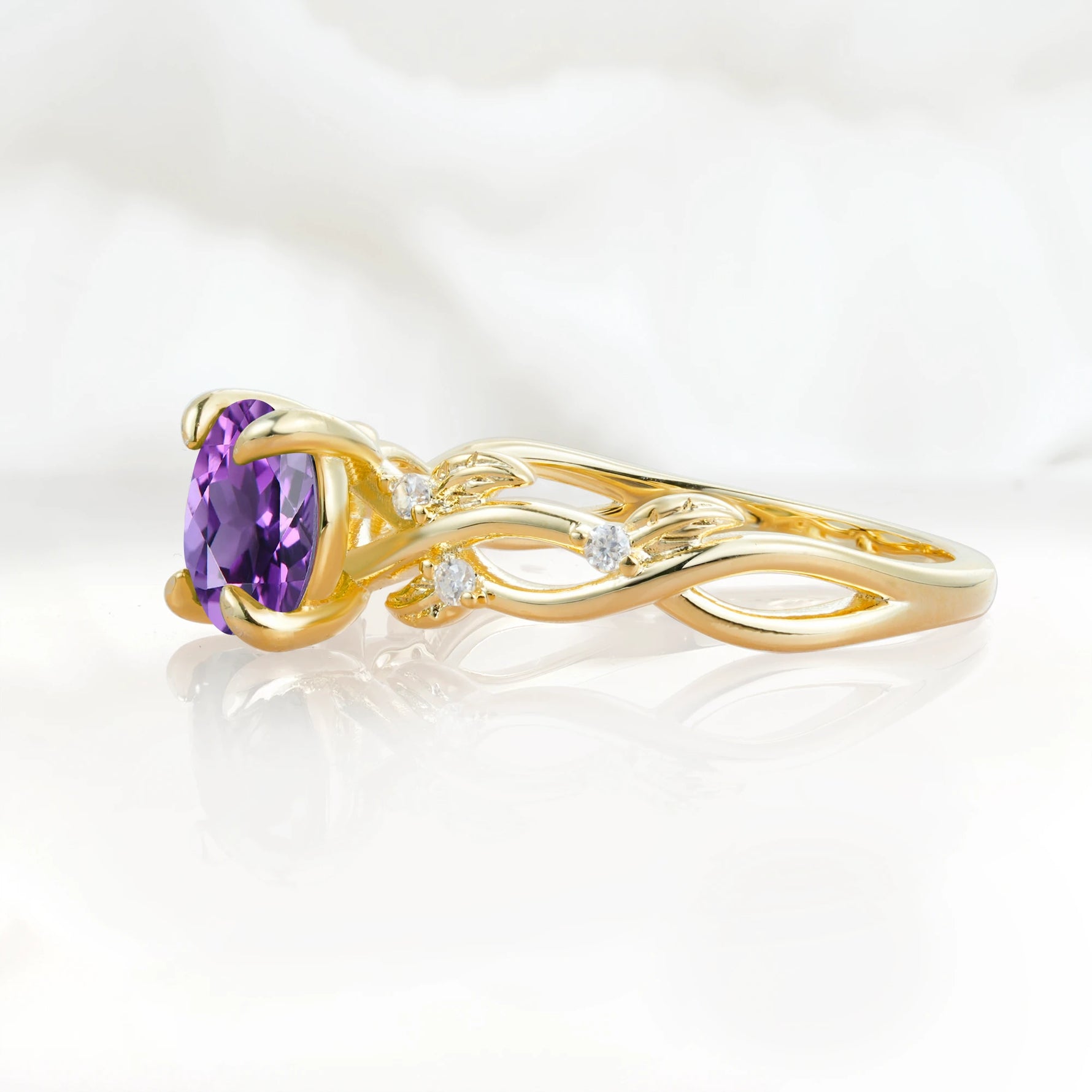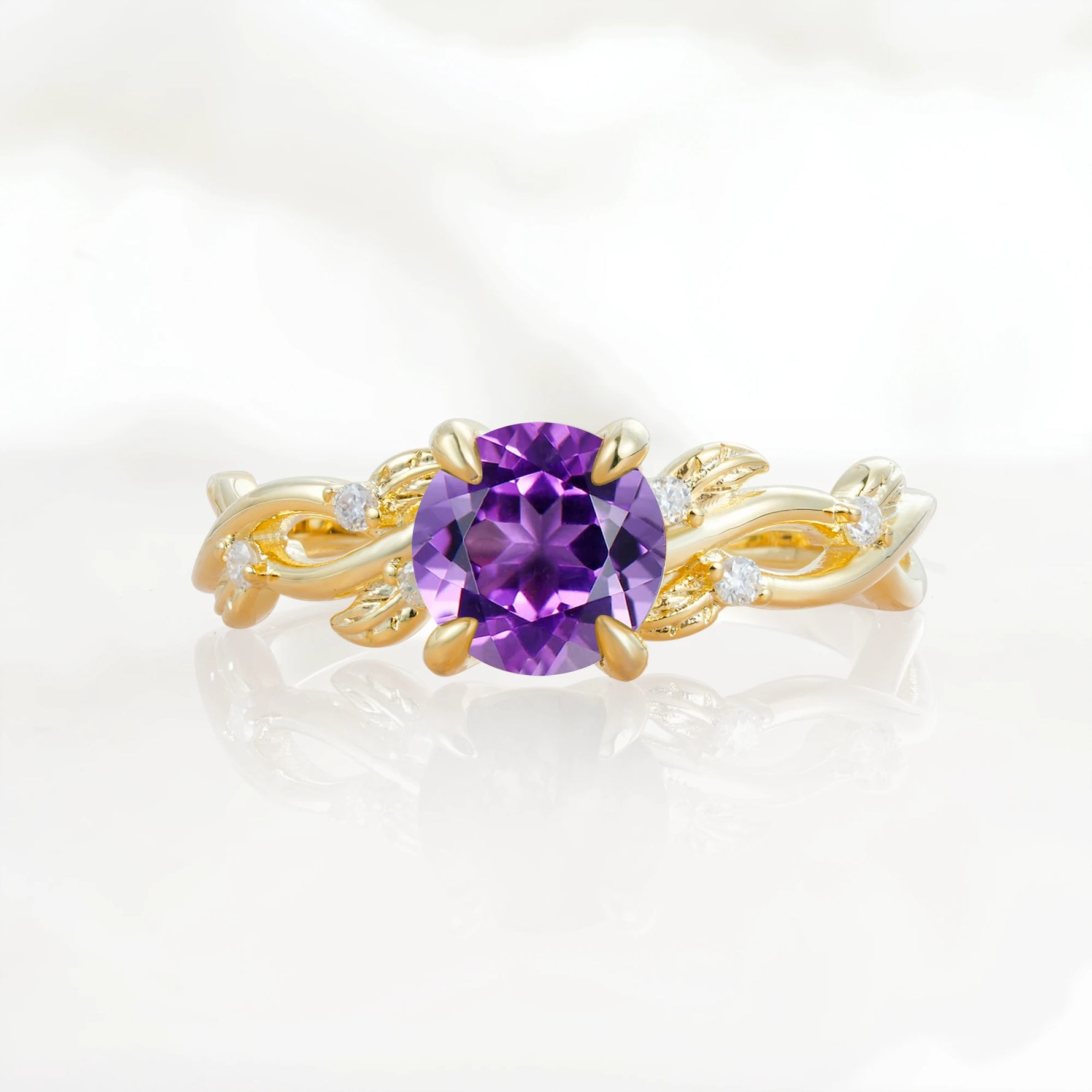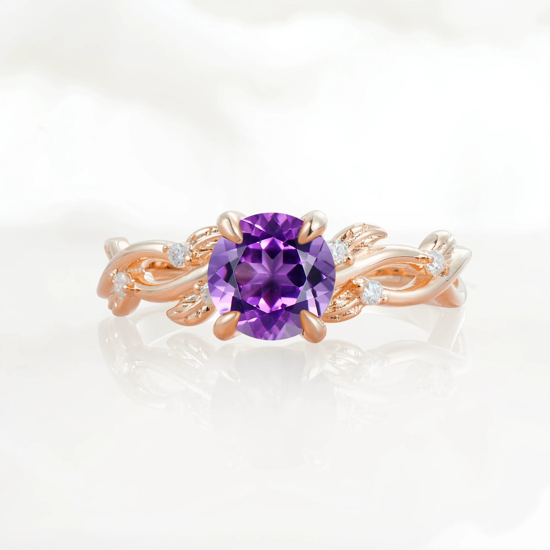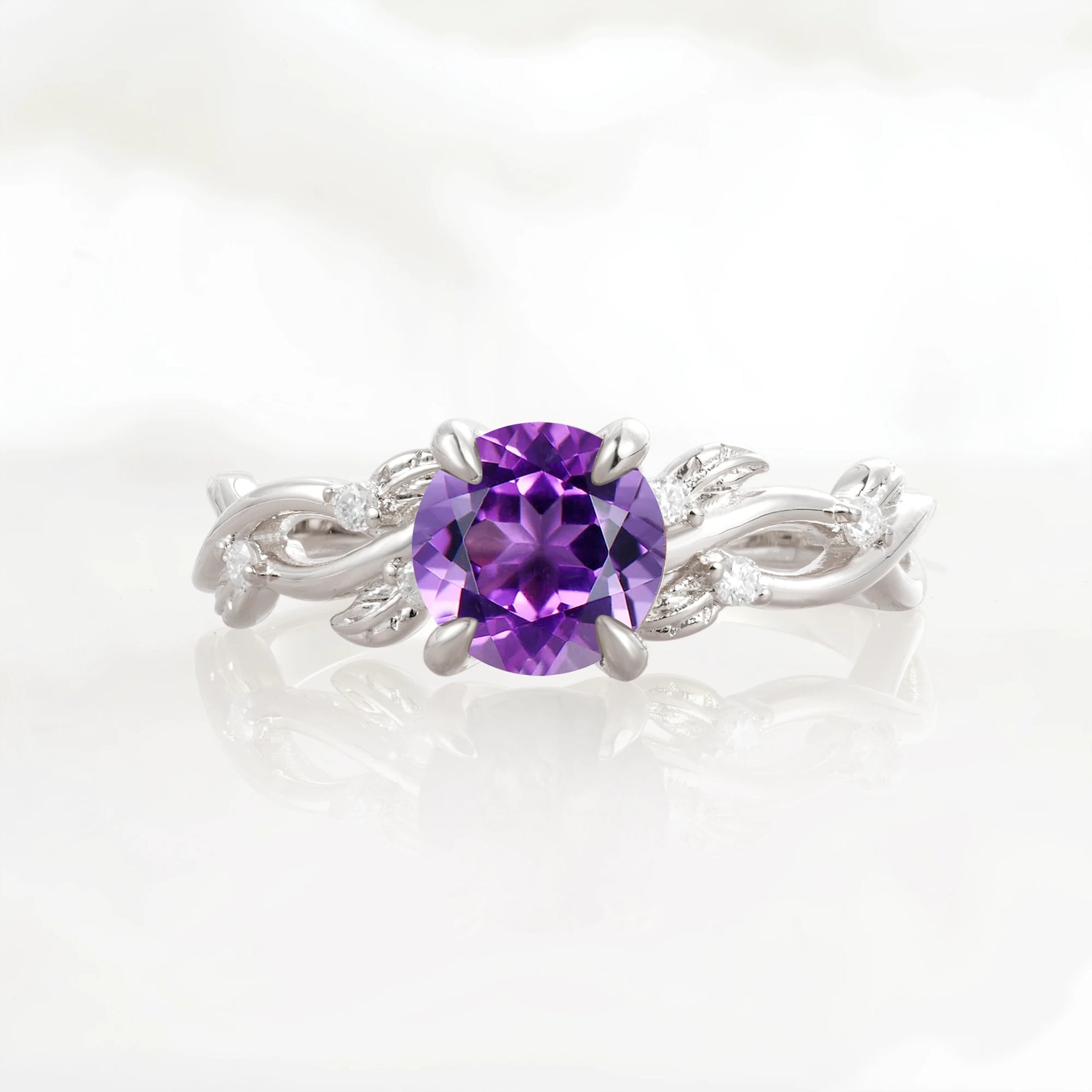 Nature Inspired Round-Shaped Amethyst Engagement Ring