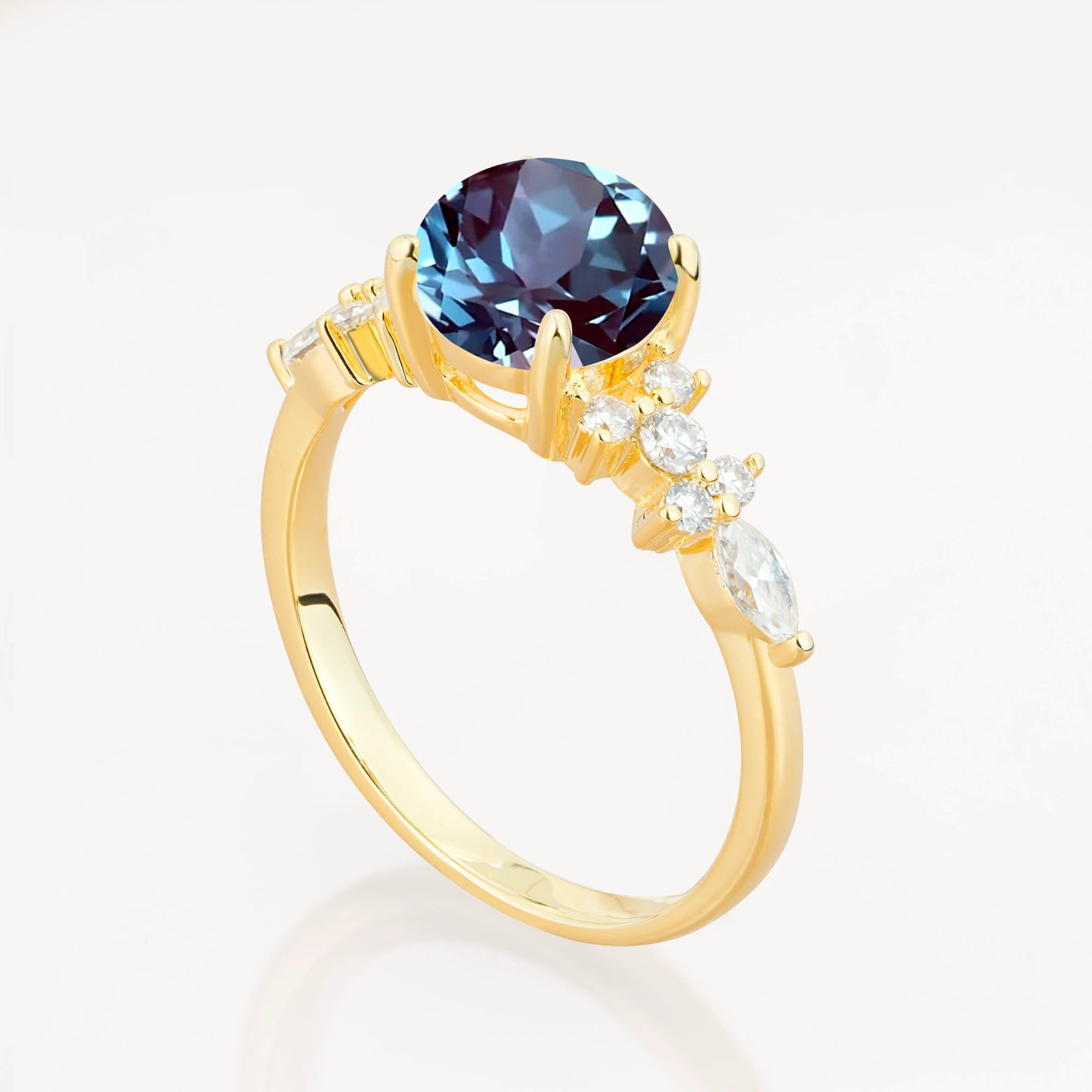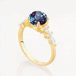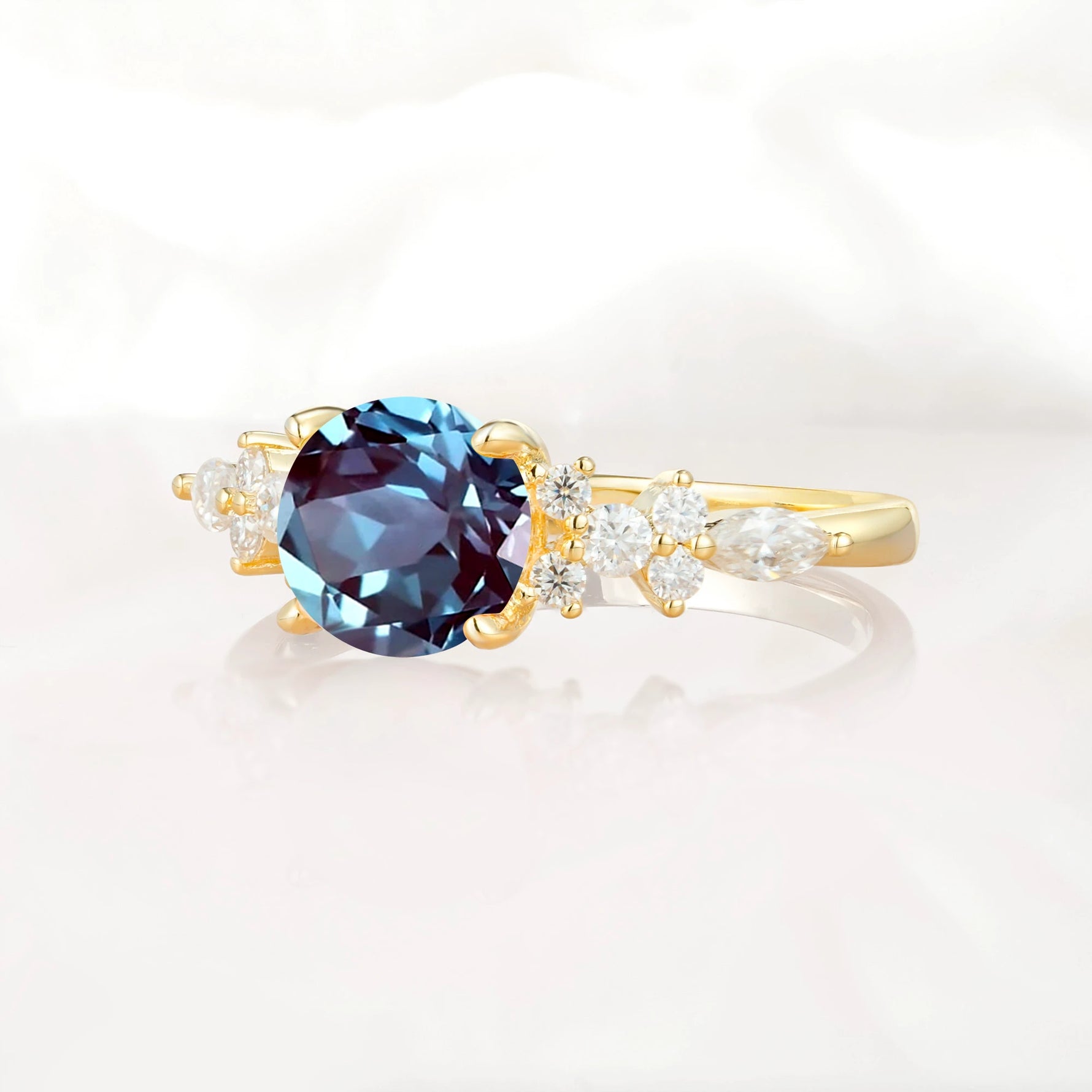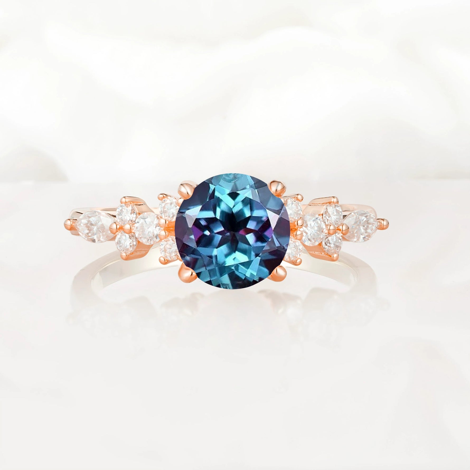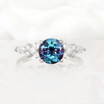 Round Cut Alexandrite Engagement Ring with Floral Side Stone Design