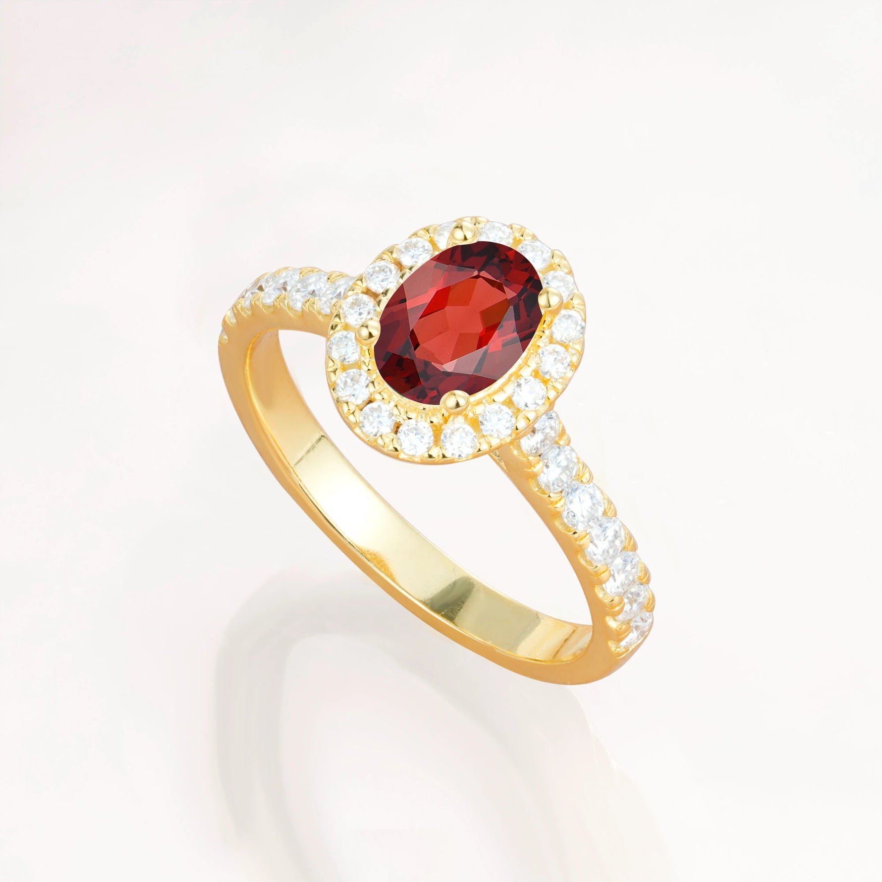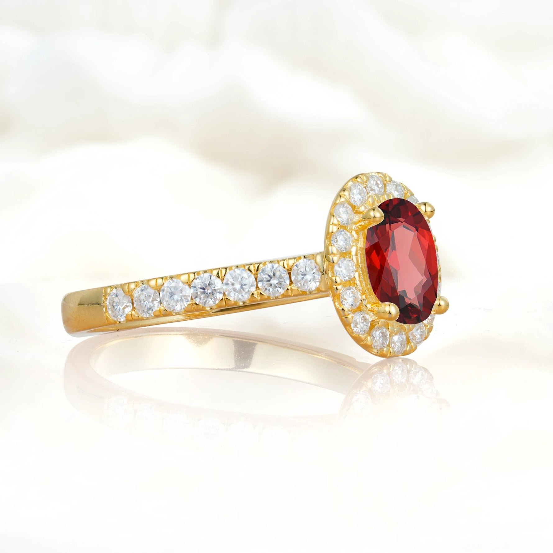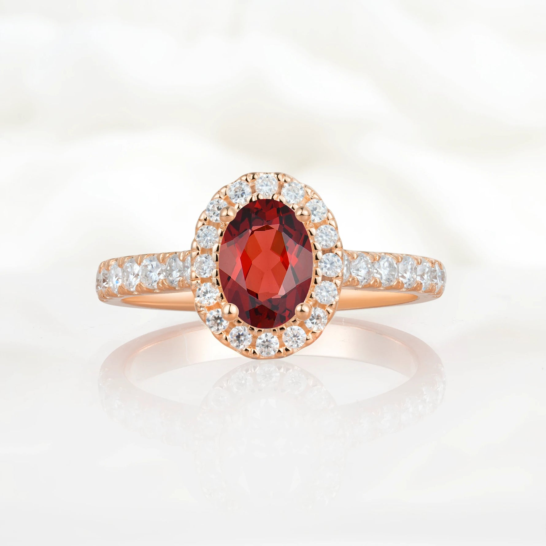 Halo Oval-Cut Garnet Engagement Ring