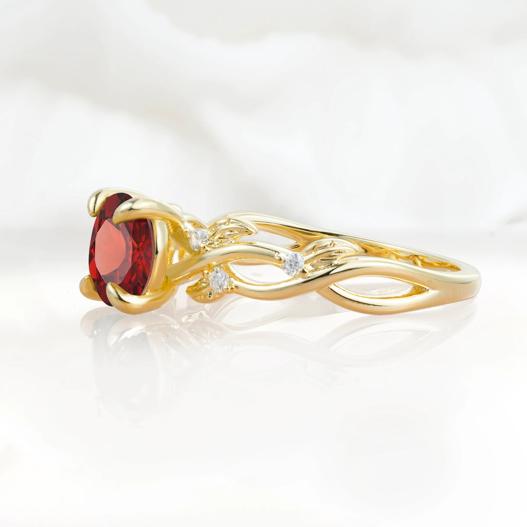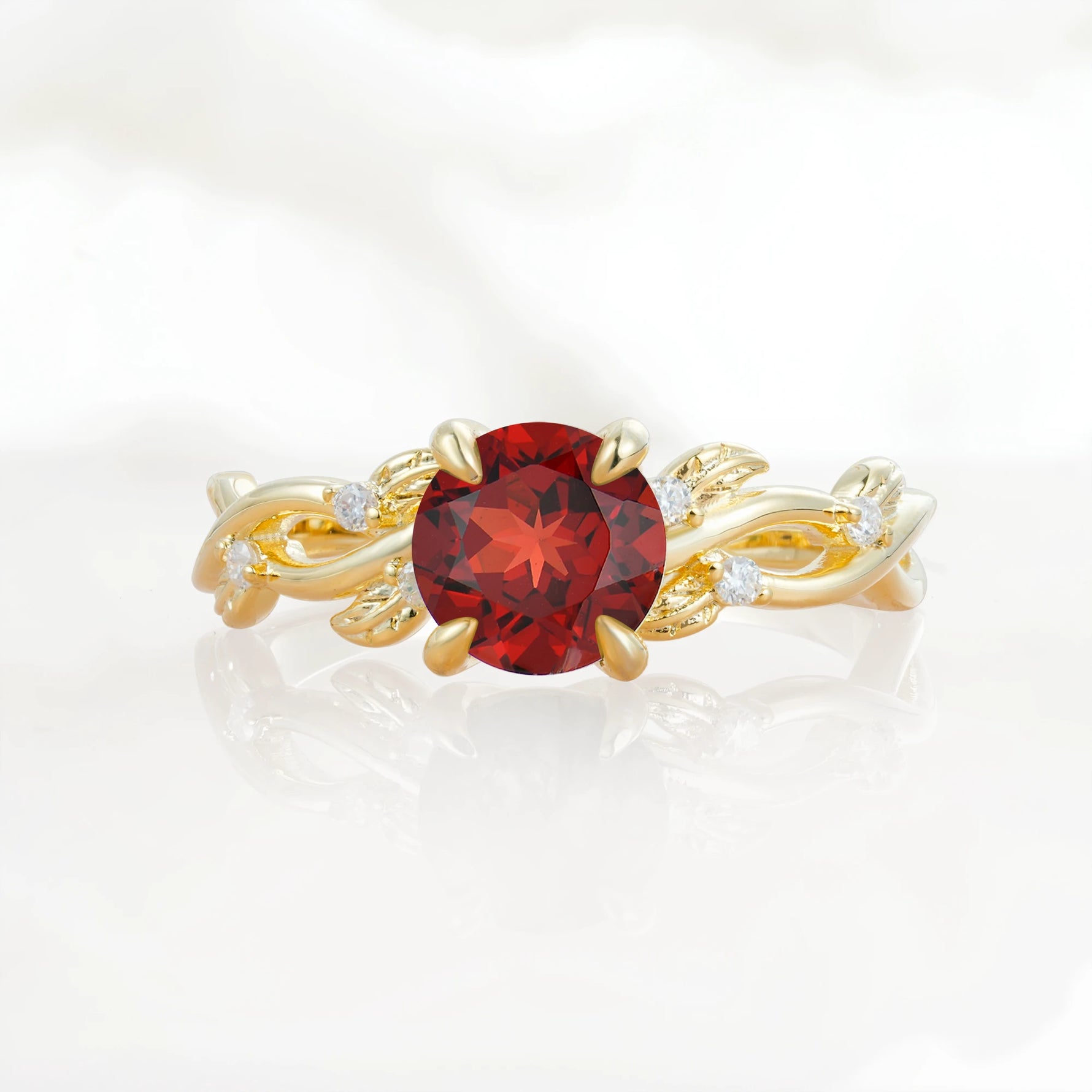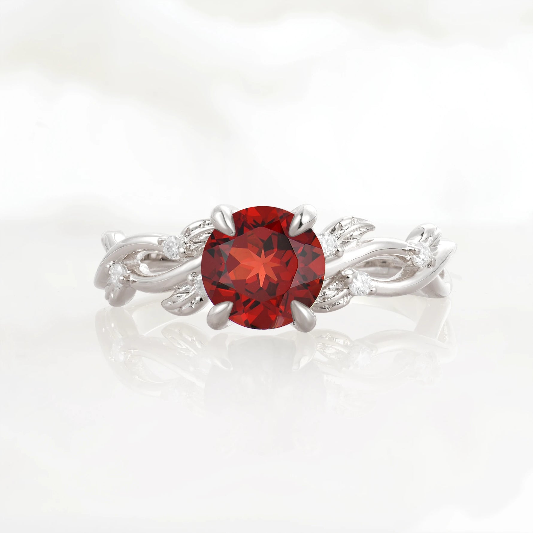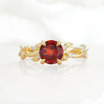 Nature Inspired Round-Shaped Garnet Engagement Ring