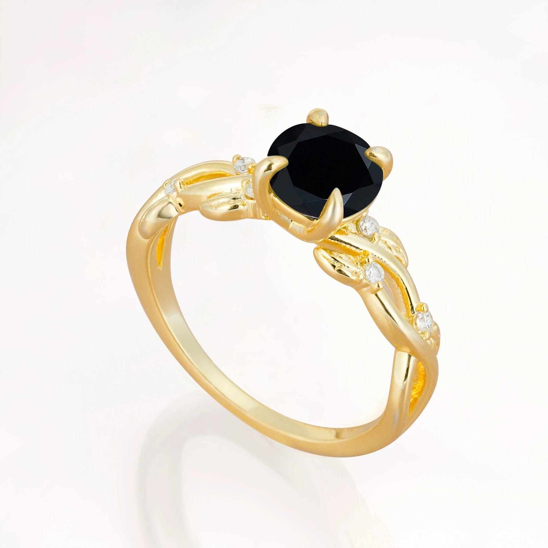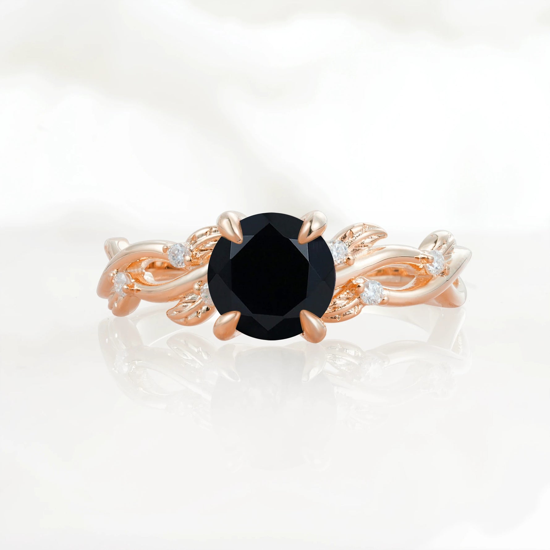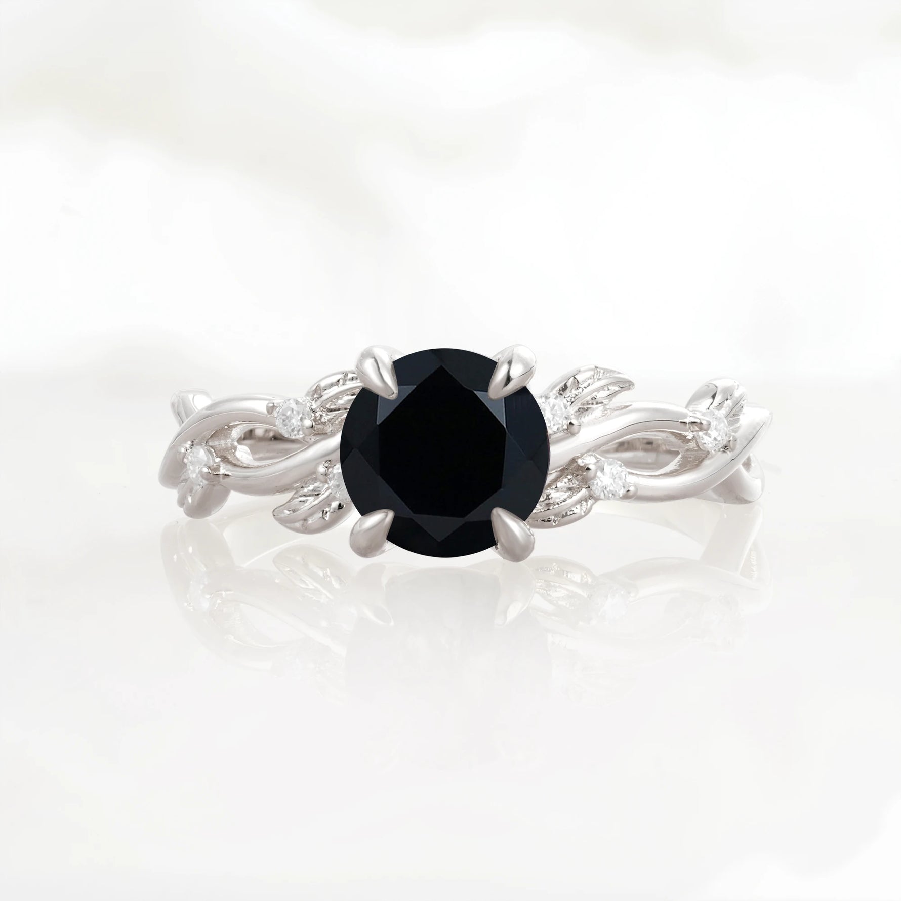 Nature Inspired Round-Shaped Black Onyx Engagement Ring