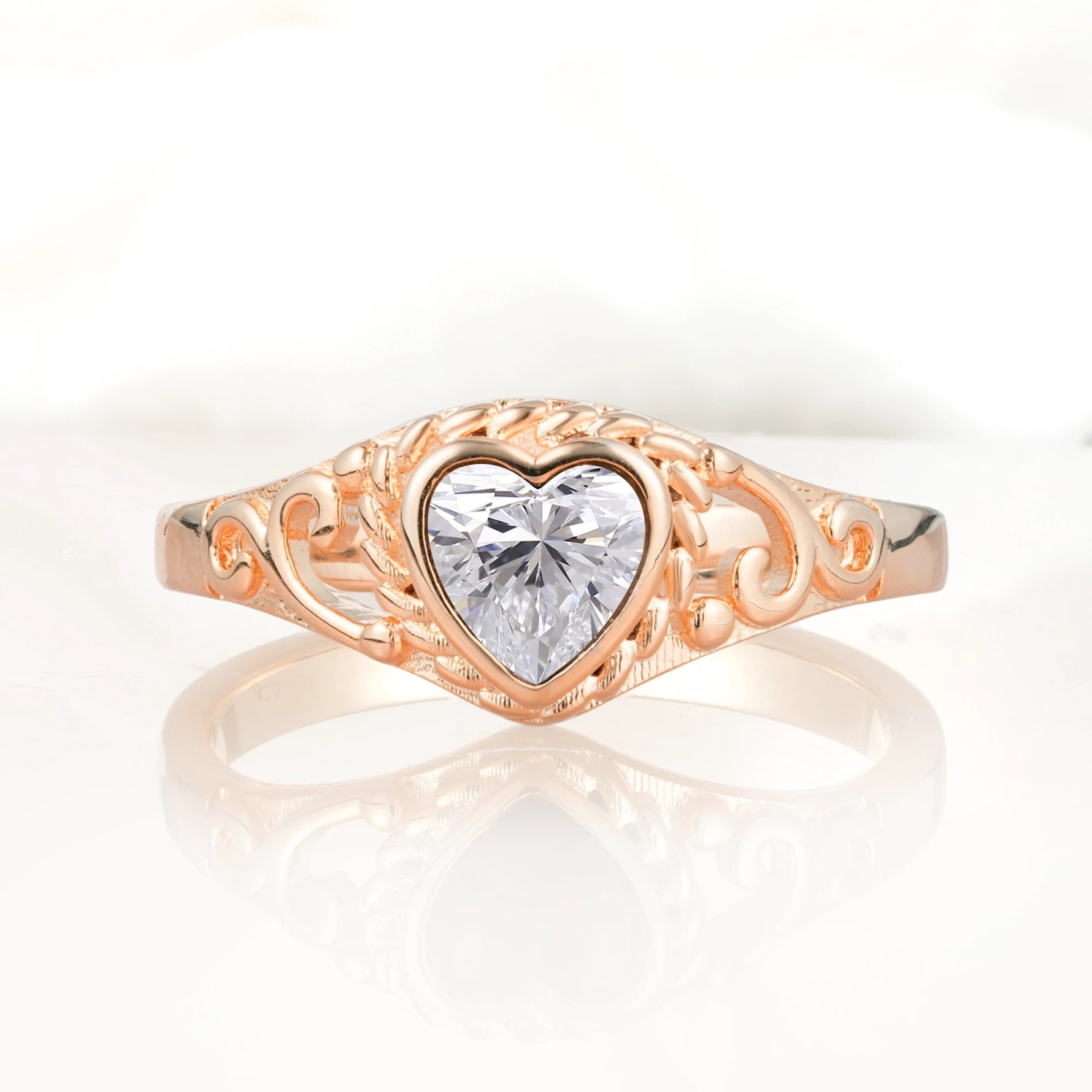 Heart-Shaped Lab Diamond Engagement Ring with Intricate Band