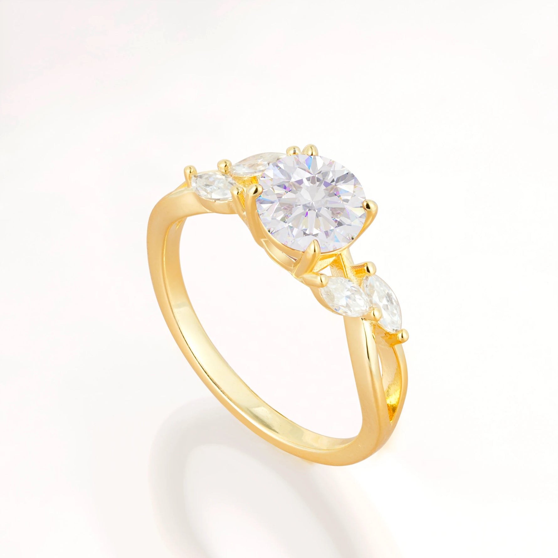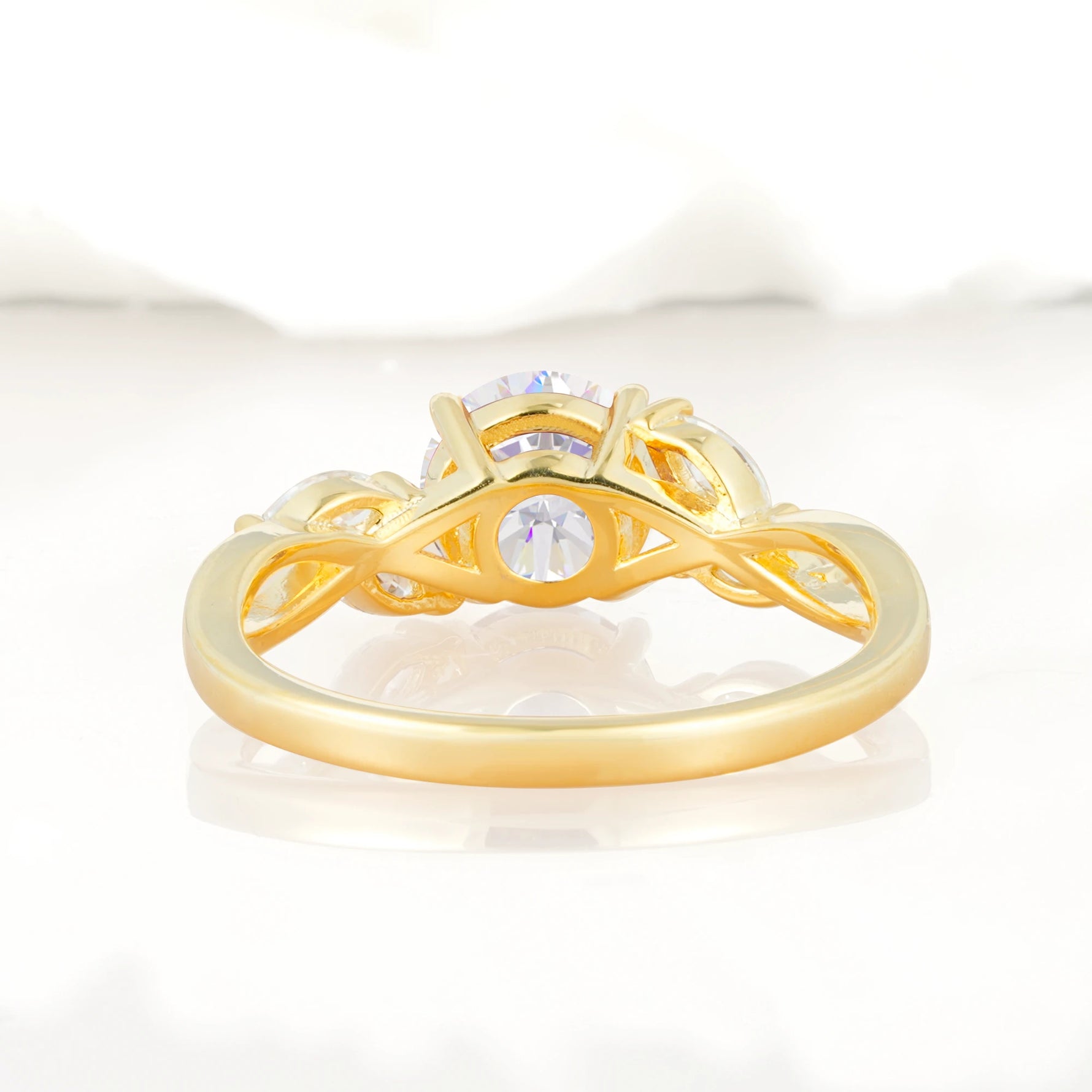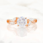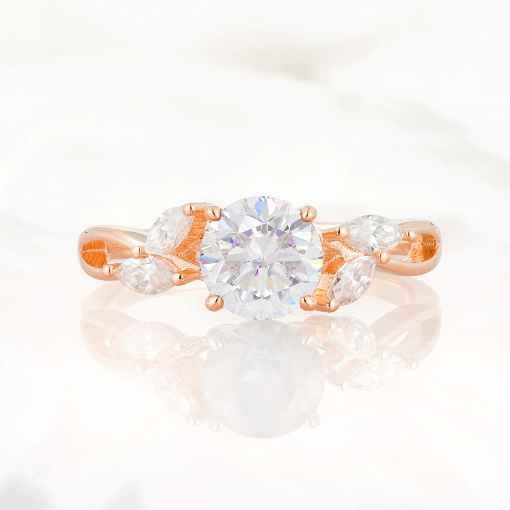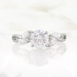 Twisted Band Round Cut Moissanite Wedding Ring with Marquise Accent