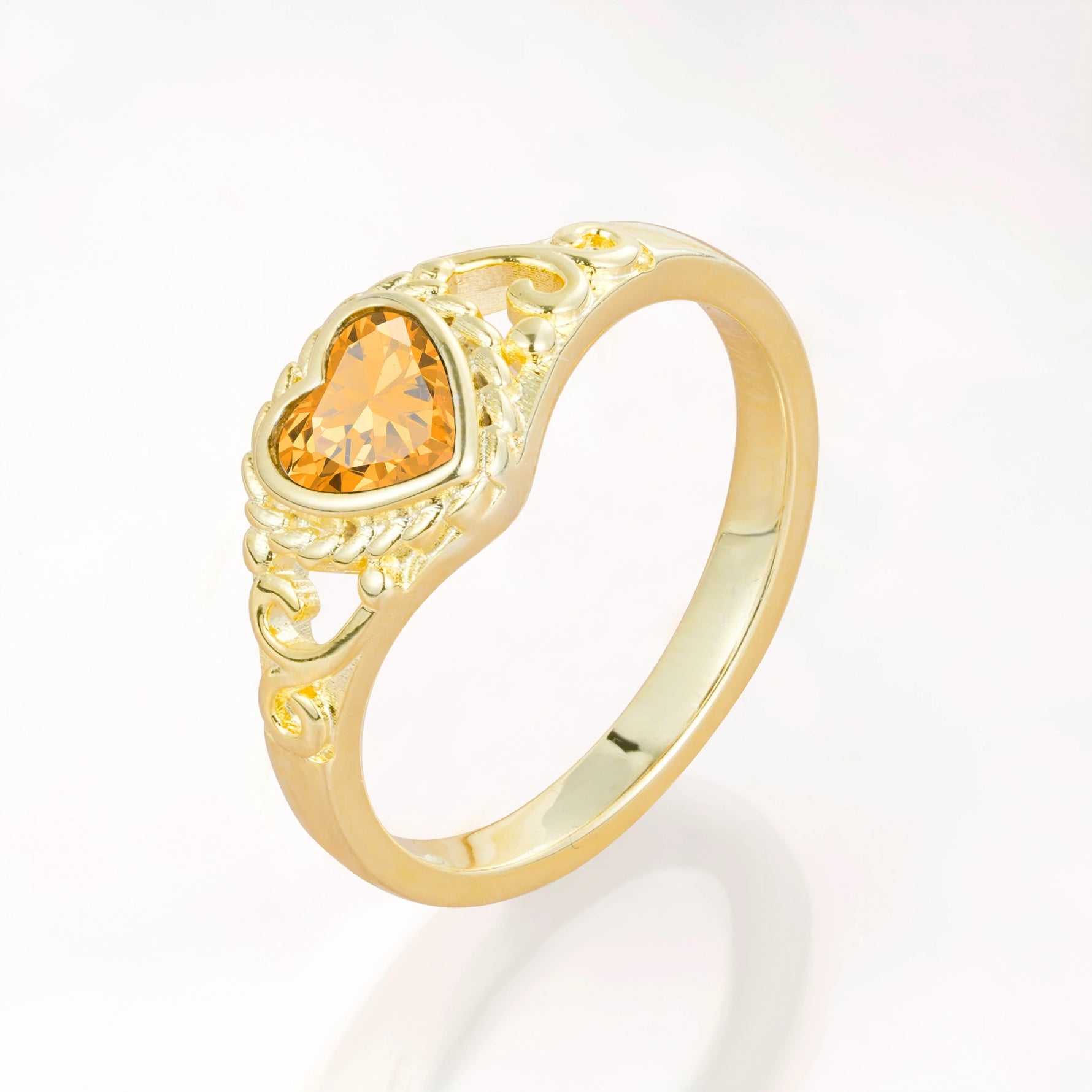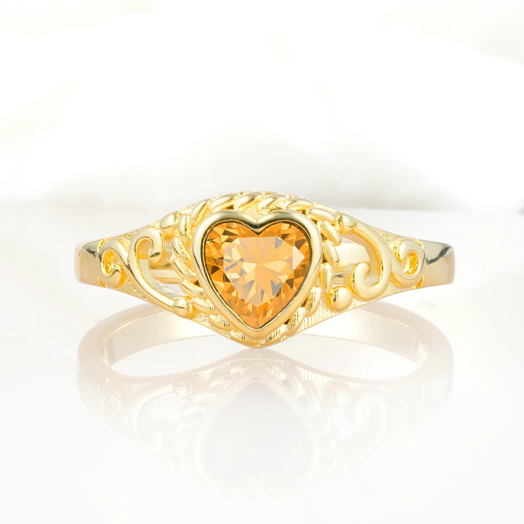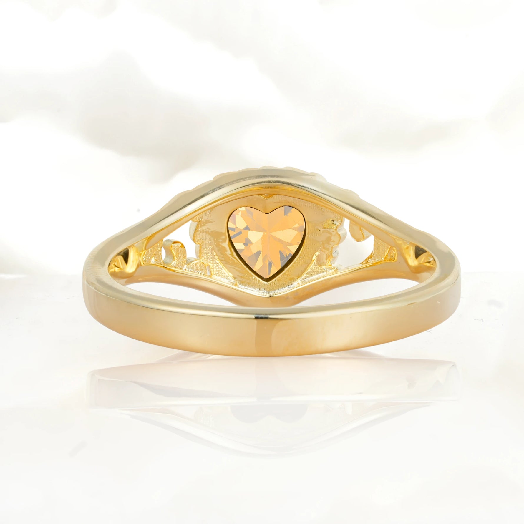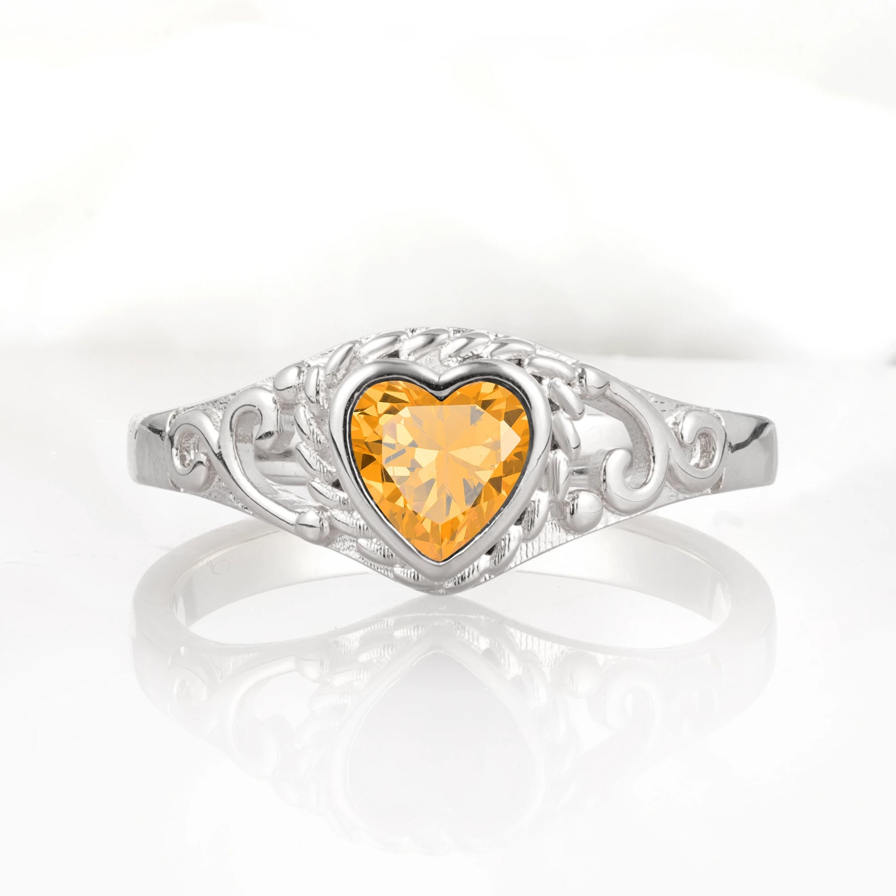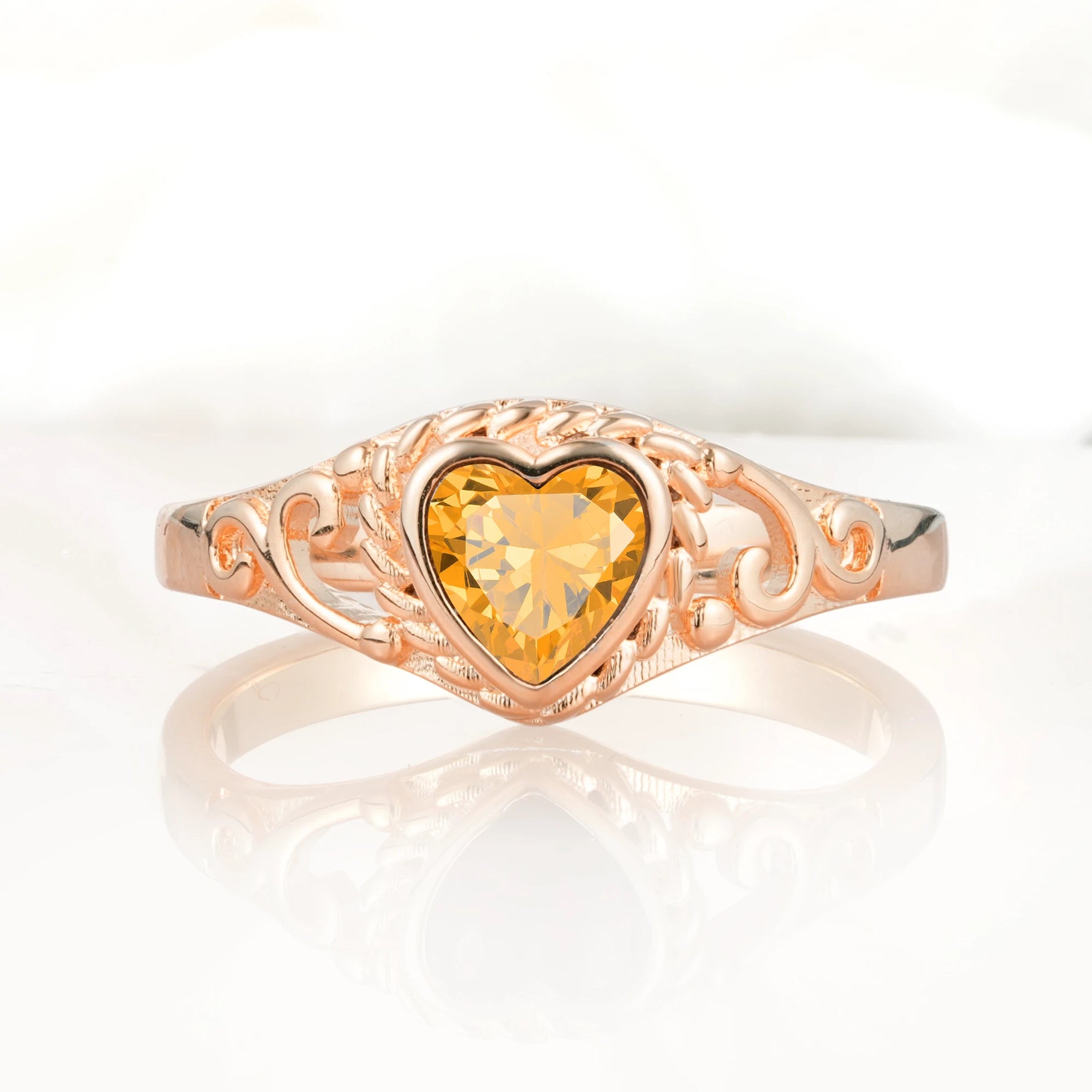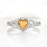 Heart-Shaped Citrine Engagement Ring with Intricate Band