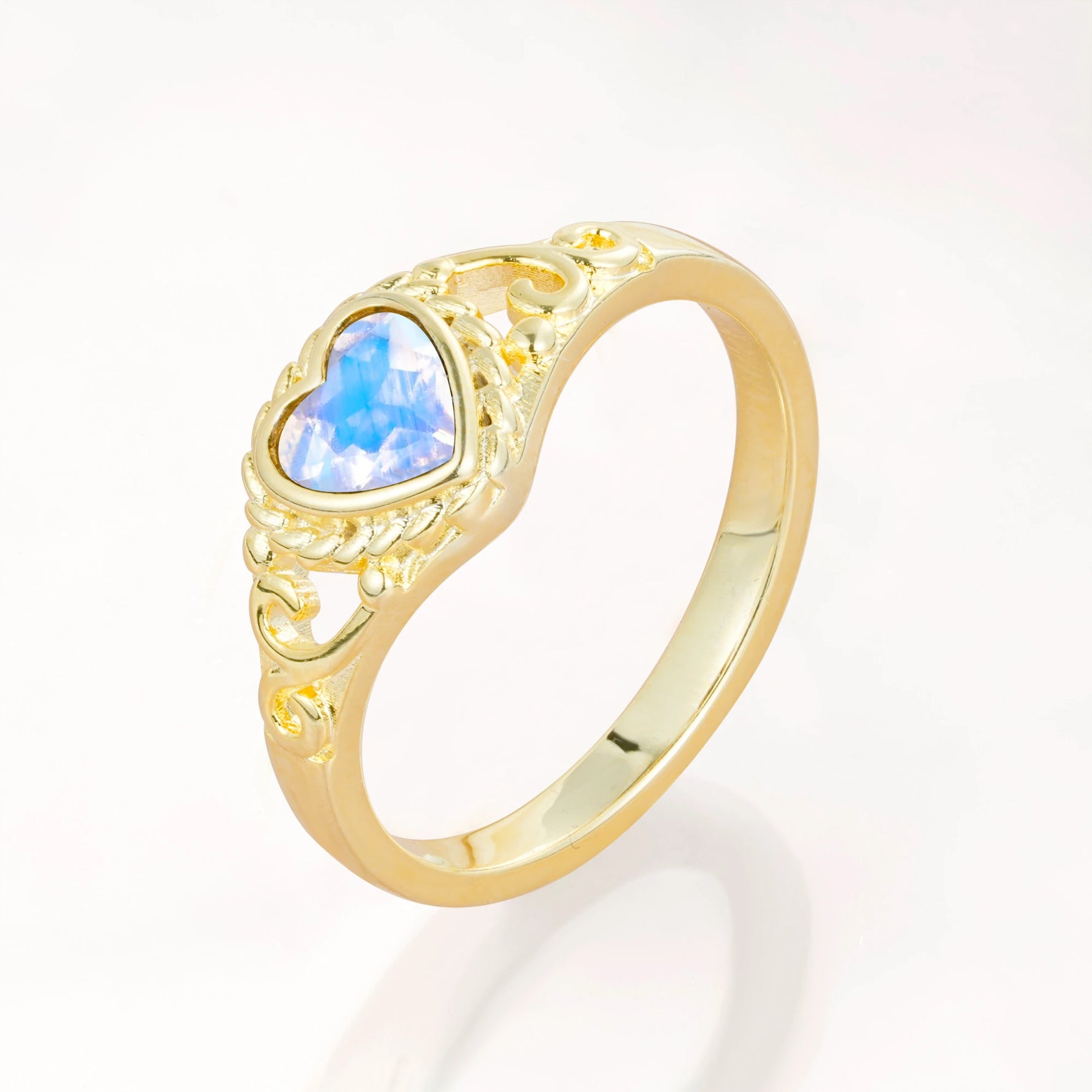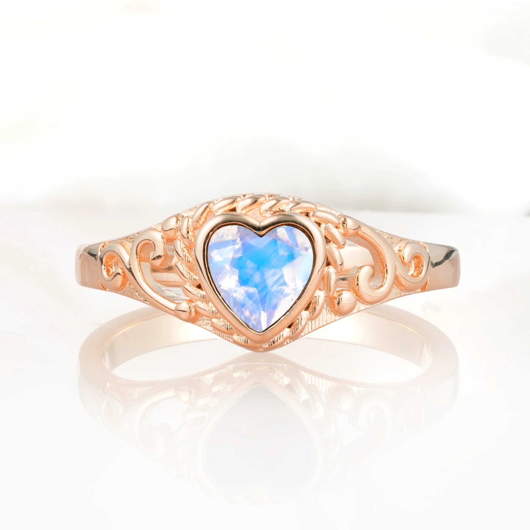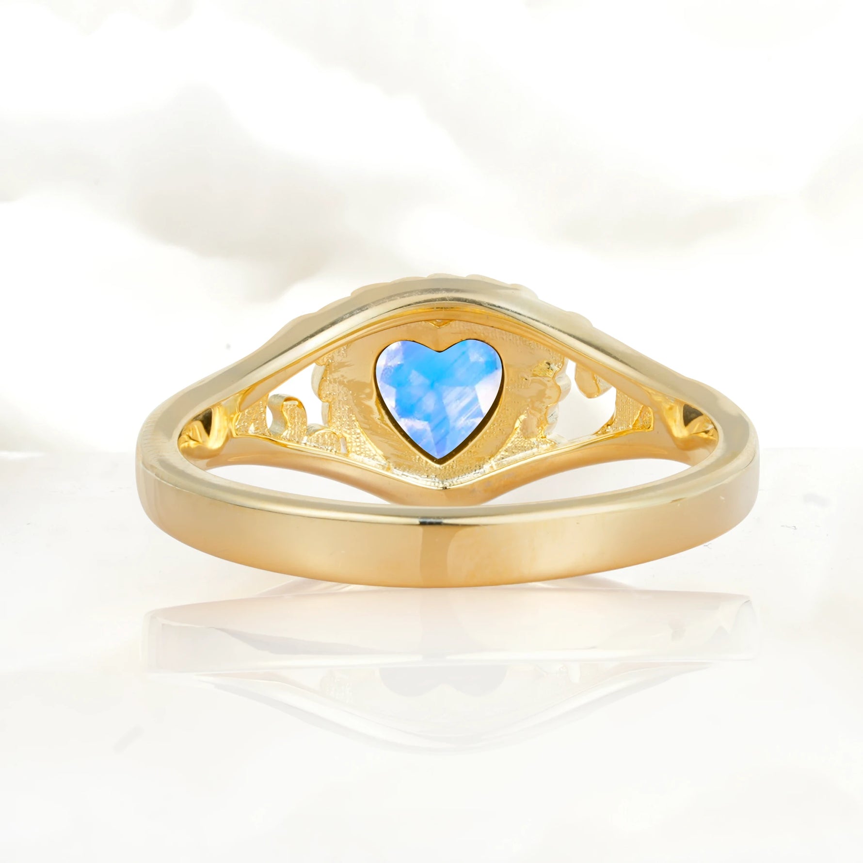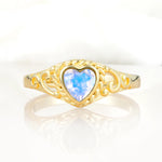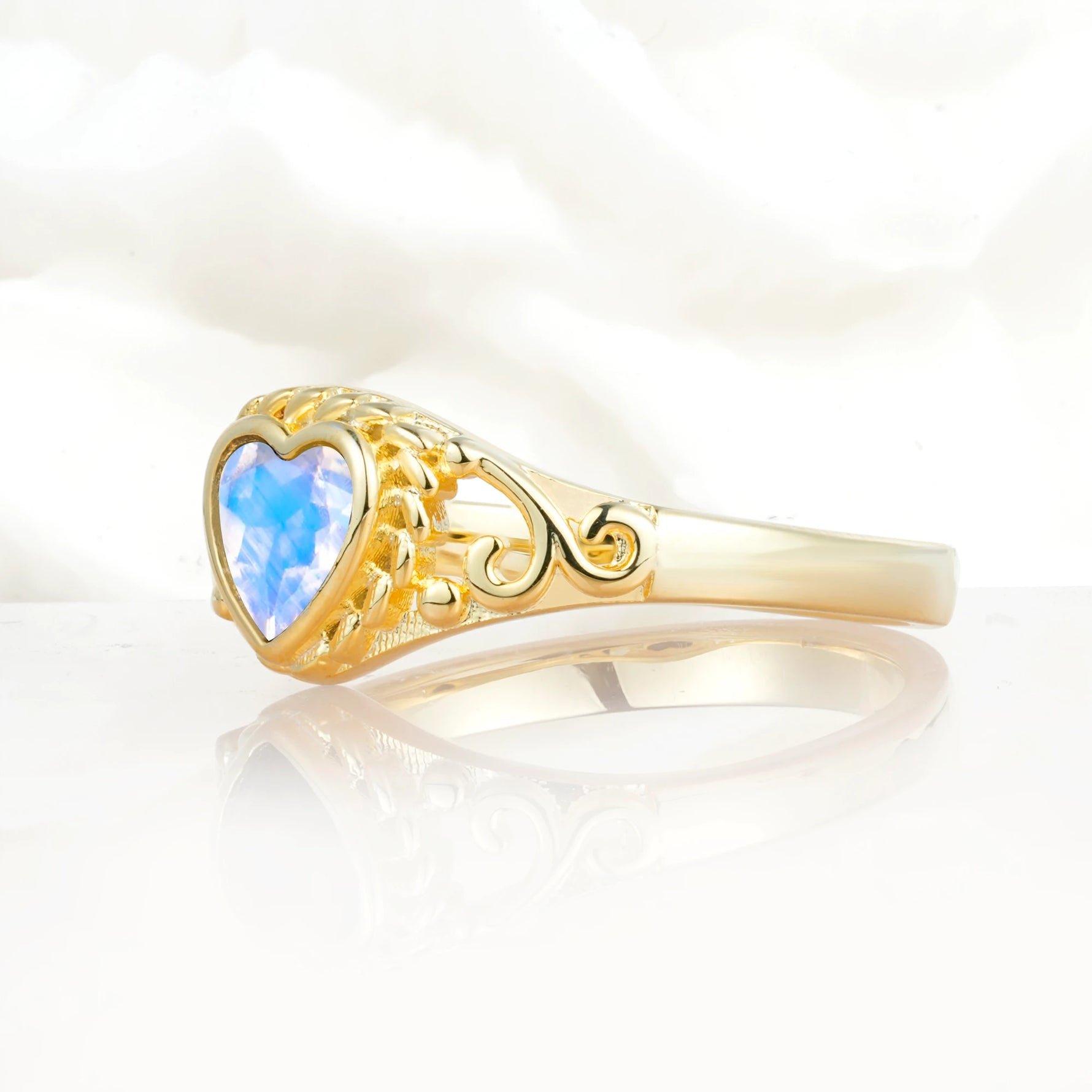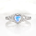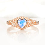 Heart-Shaped Moonstone Engagement Ring with Intricate Band