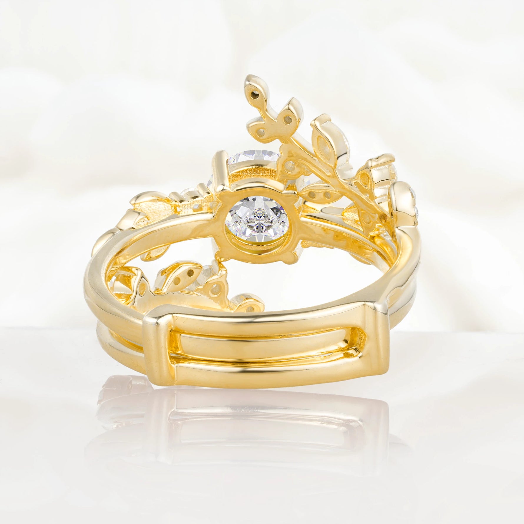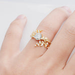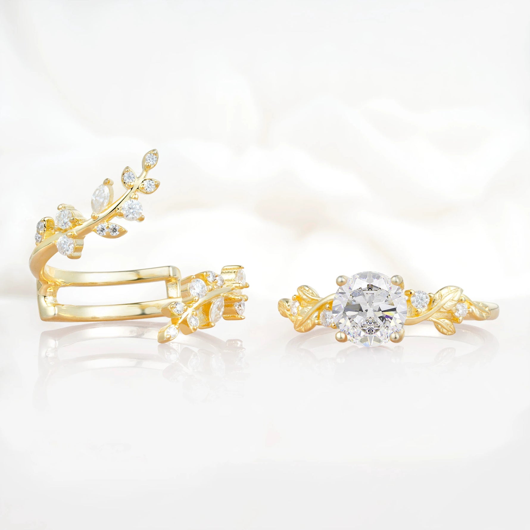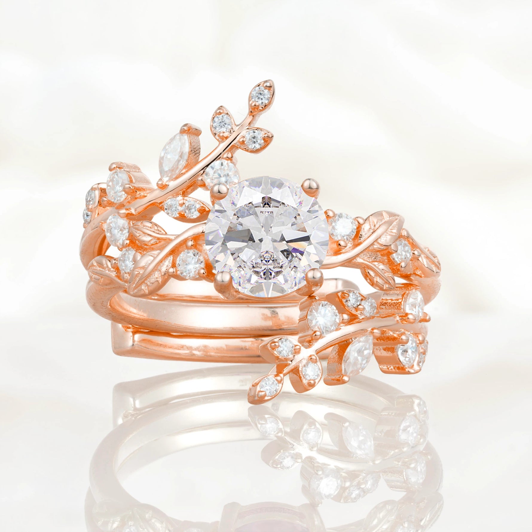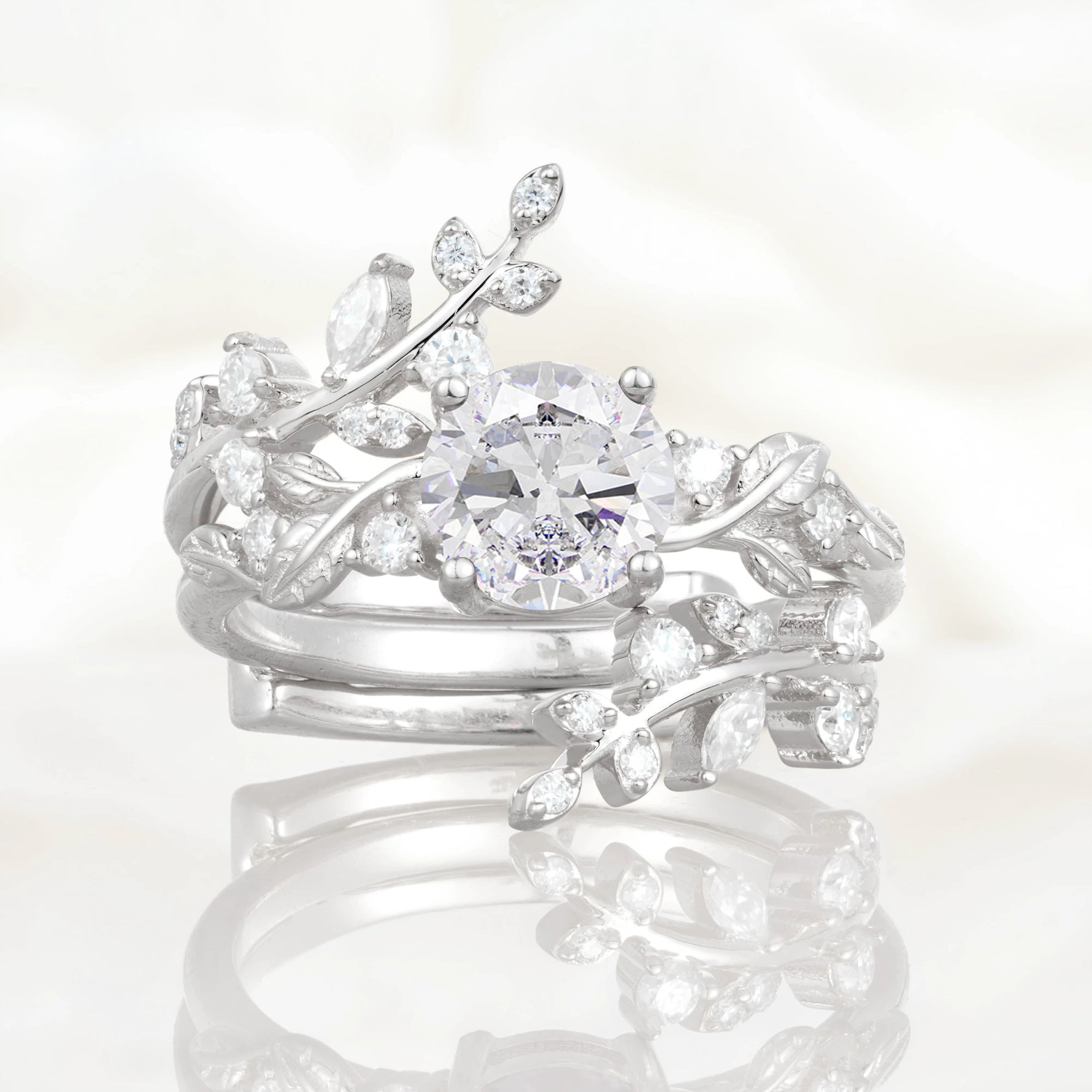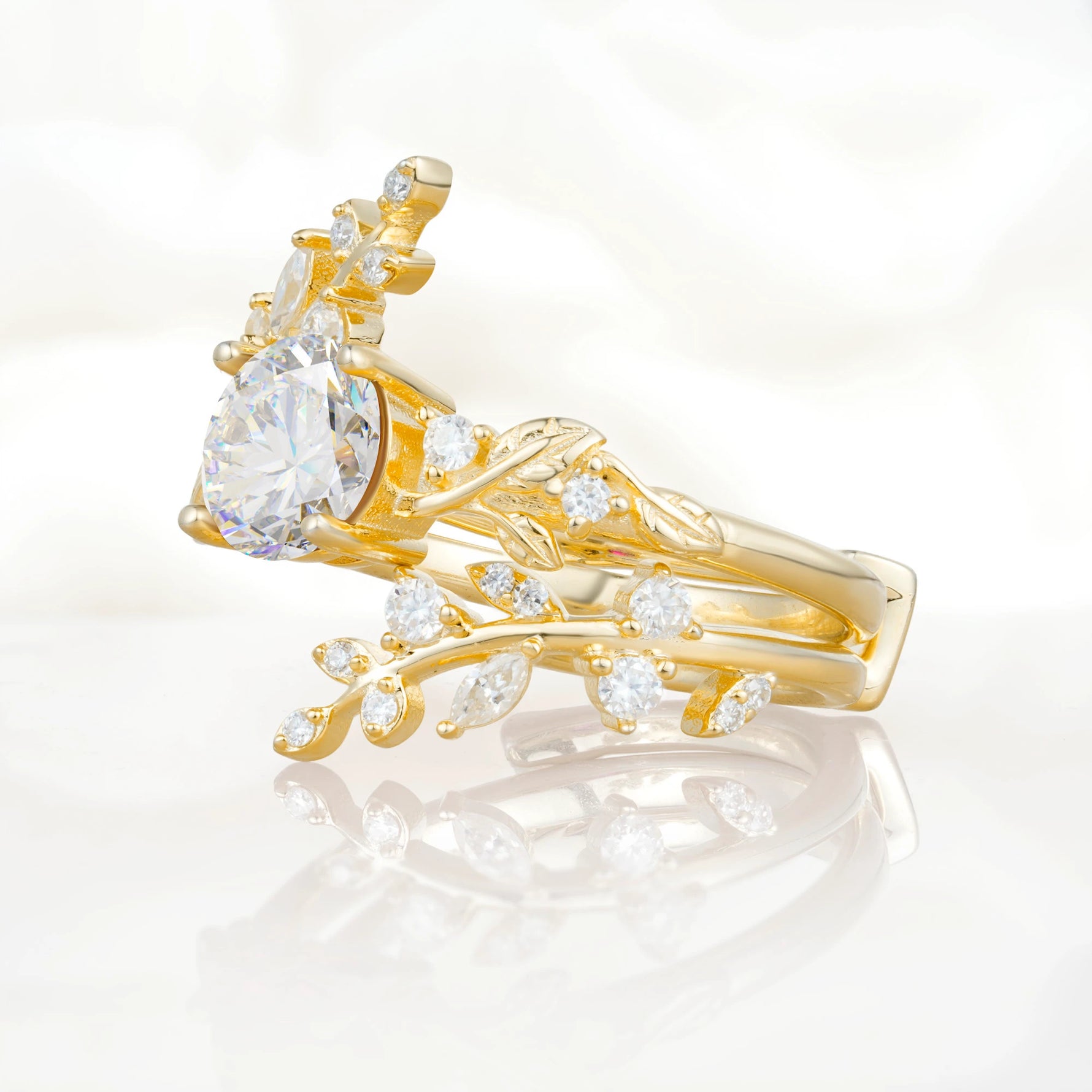 Nature Inspired Leaf Moissanite Engagement Ring Set for Women