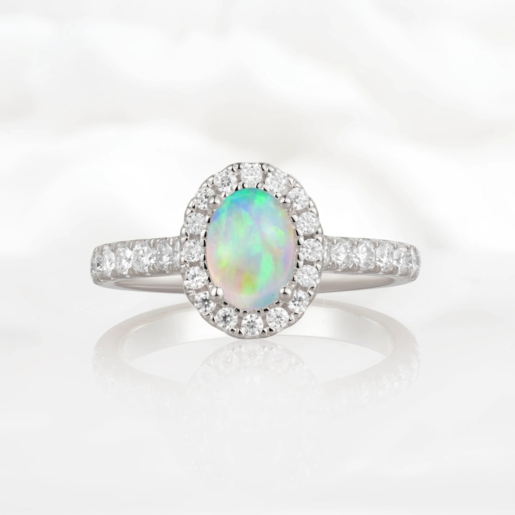 Halo Oval-Cut Opal Engagement Ring