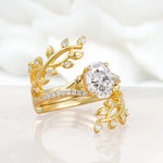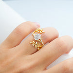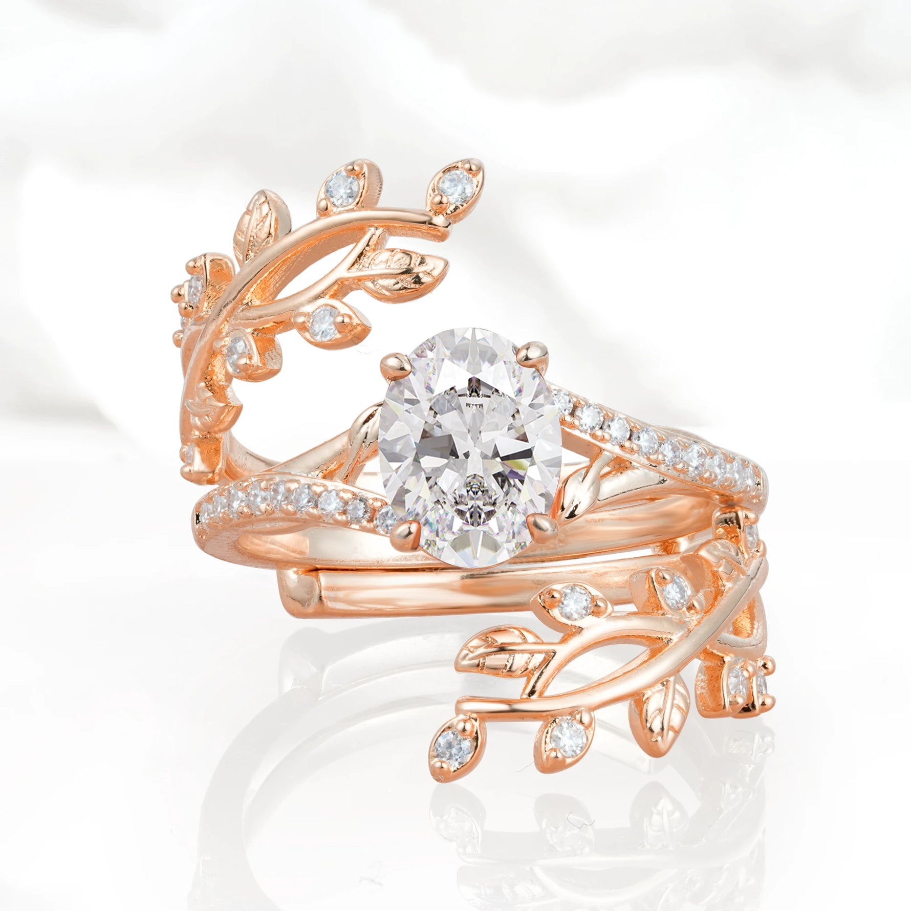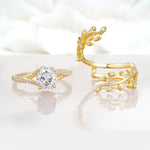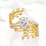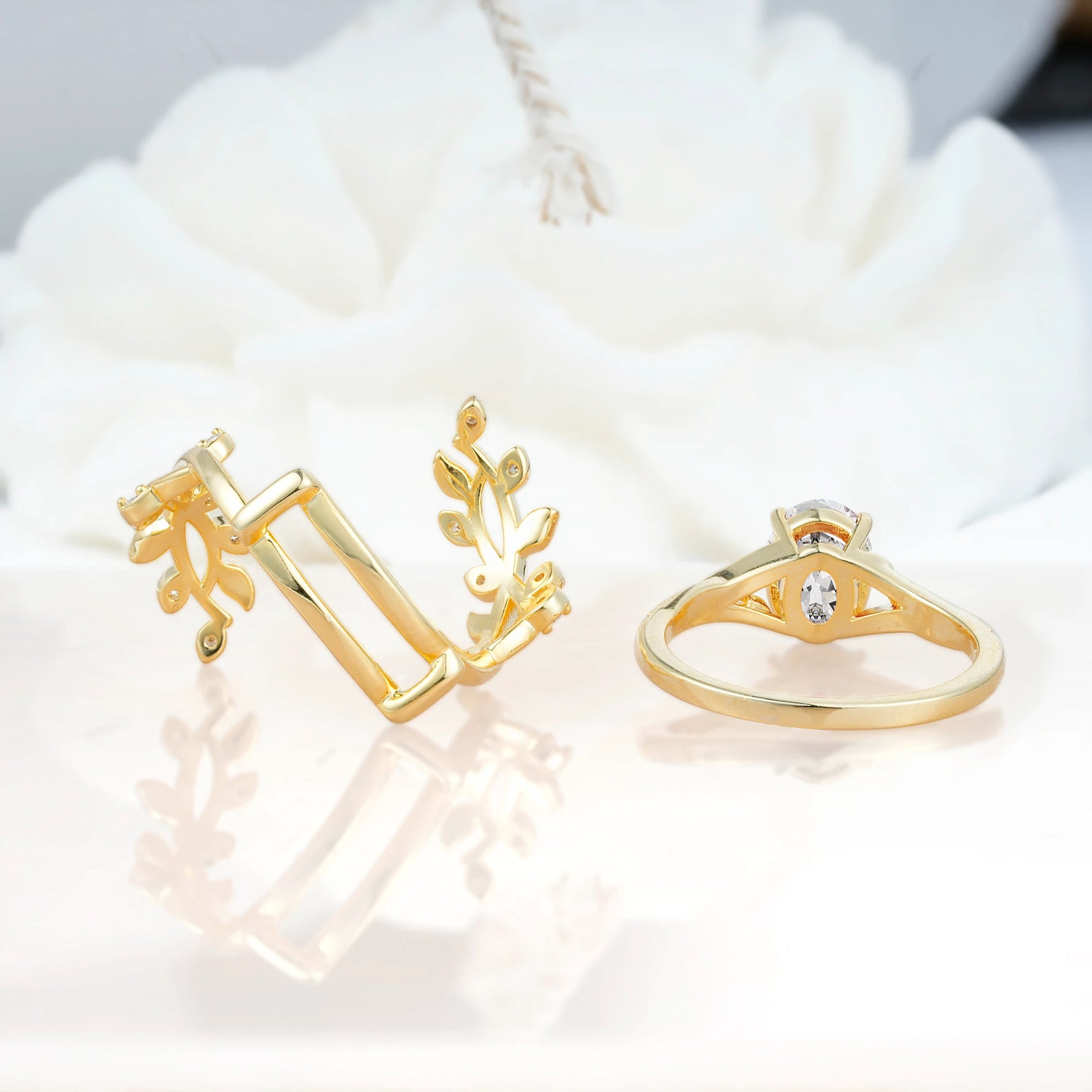Nature-Inspired Gold Leaf Moissanite Engagement Ring Set with Oval Cut