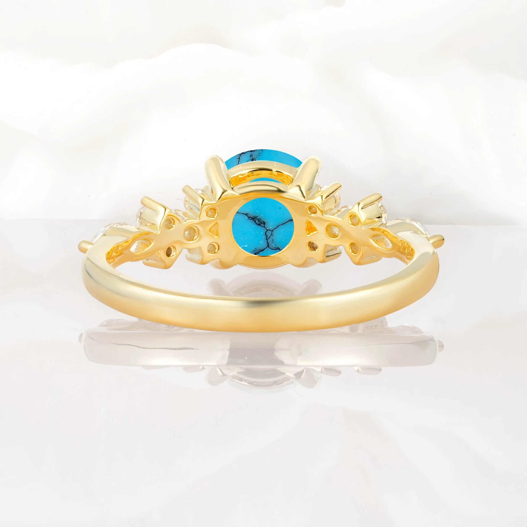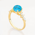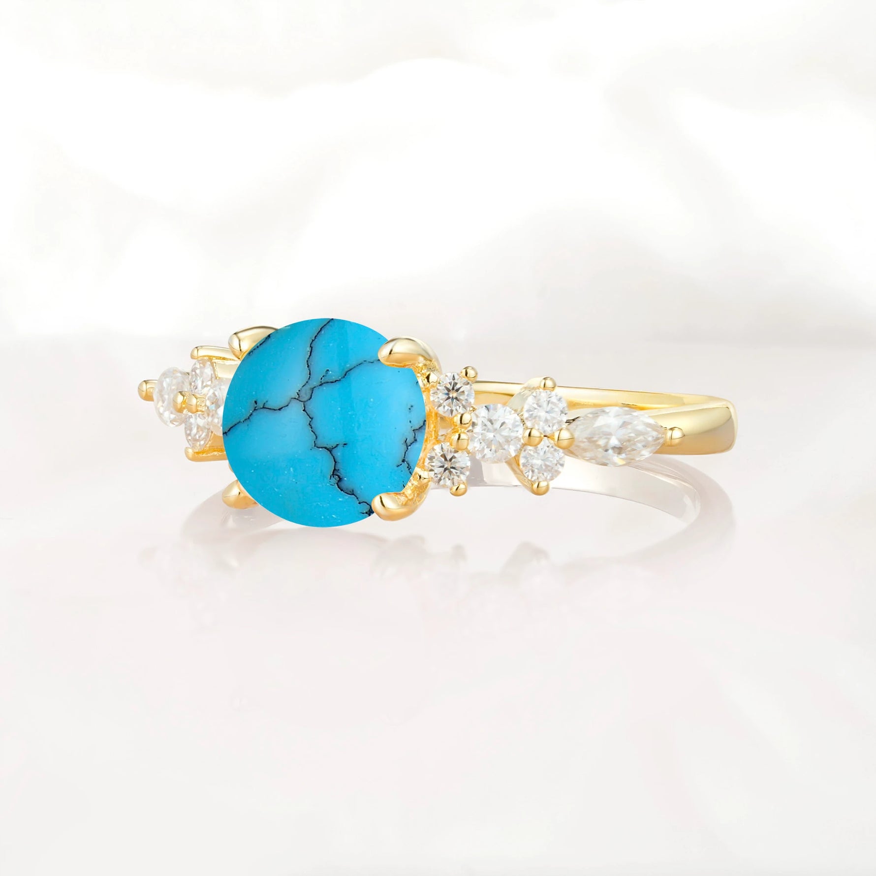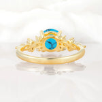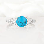 Round Cut Turquoise Engagement Ring with Floral Side Stone Design