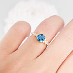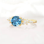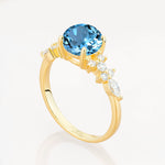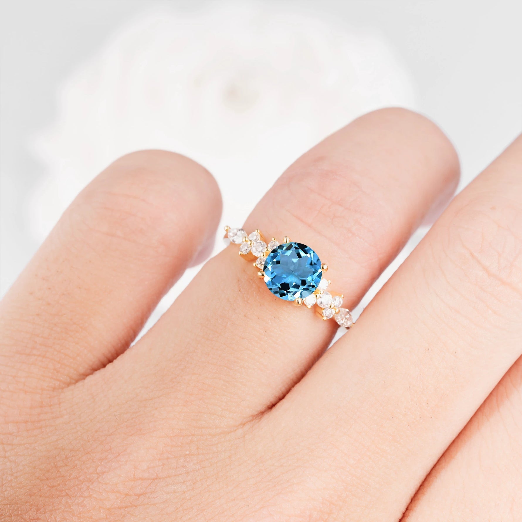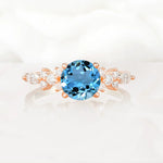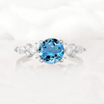 Round Cut Aquamarine Engagement Ring with Floral Side Stone Design