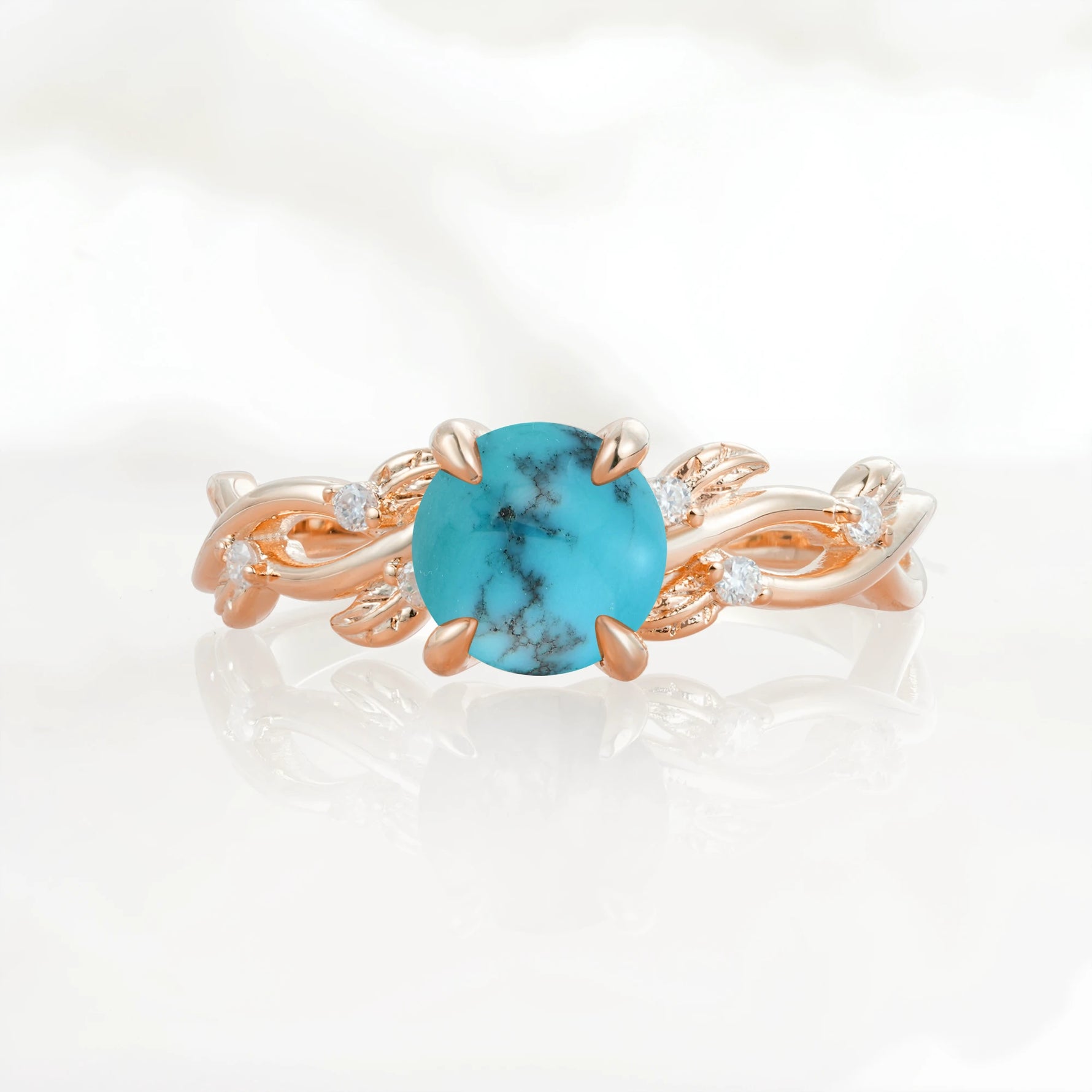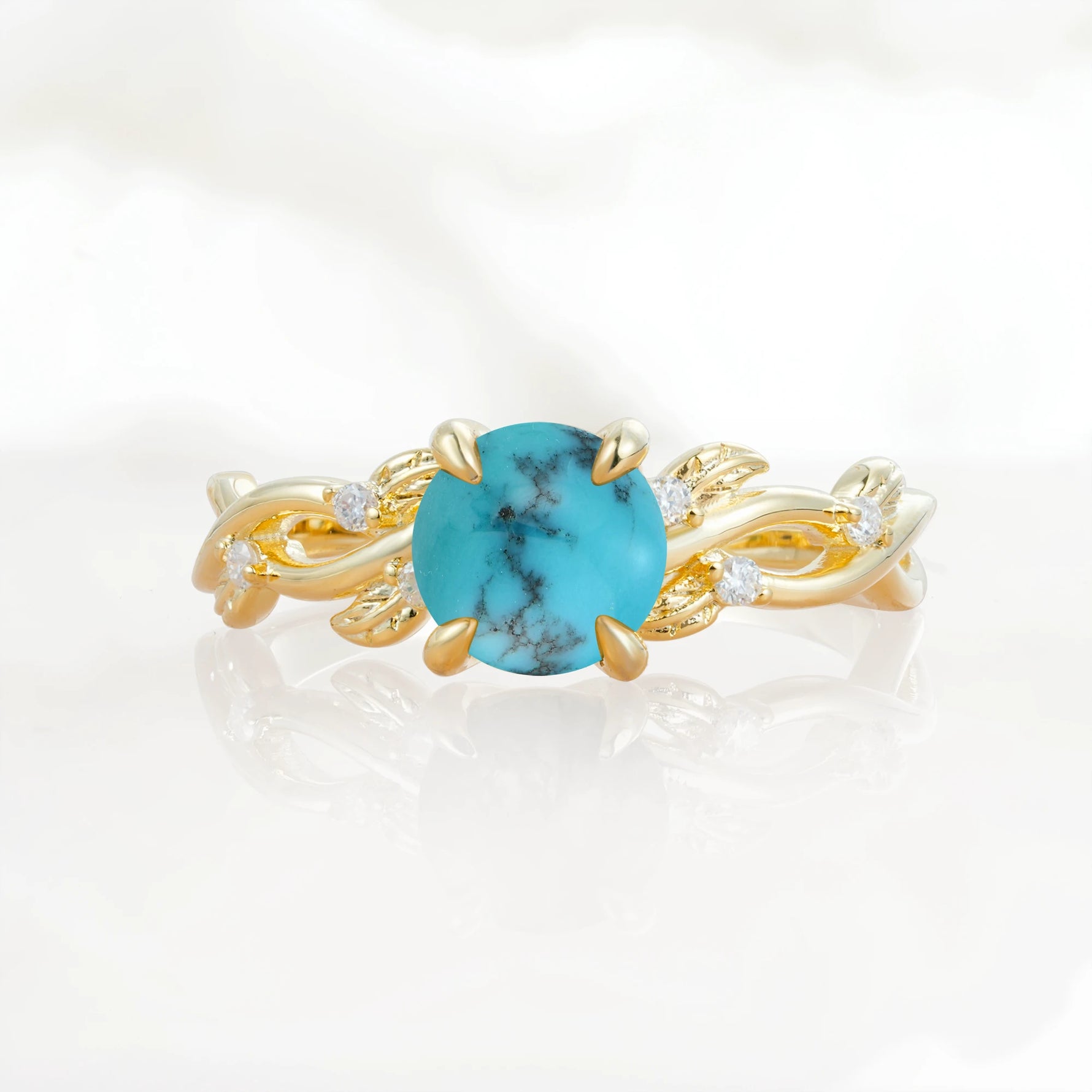 Nature Inspired Round-Shaped Turquoise Engagement Ring
