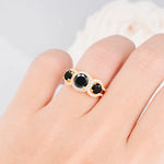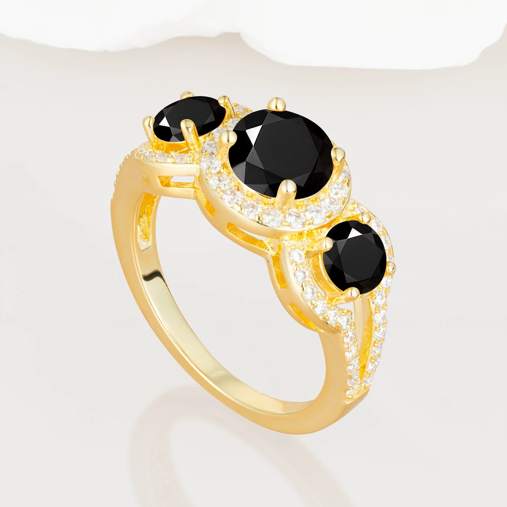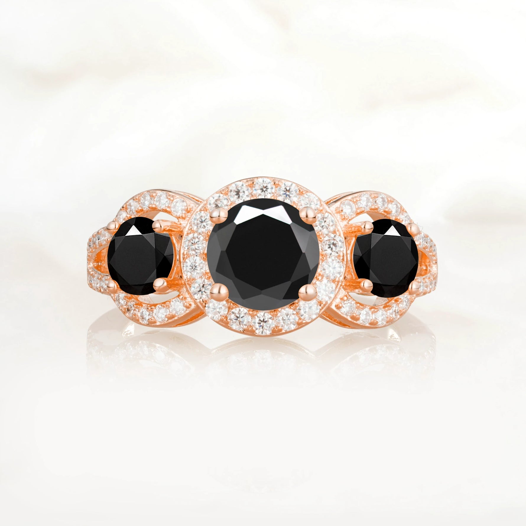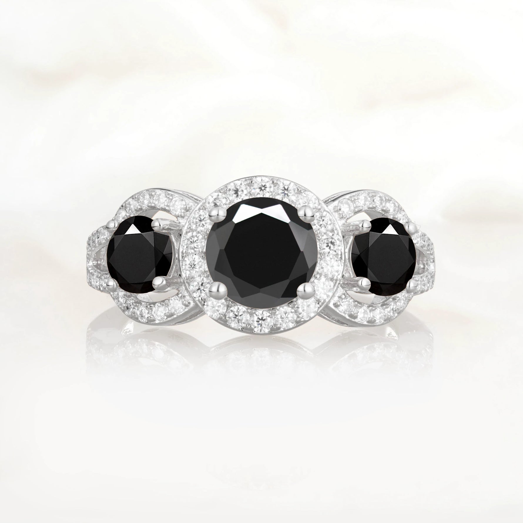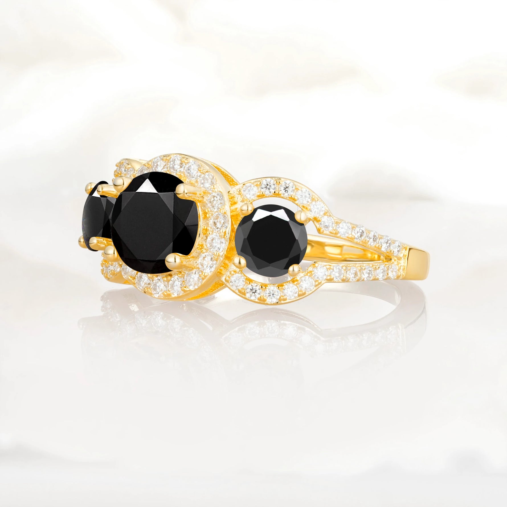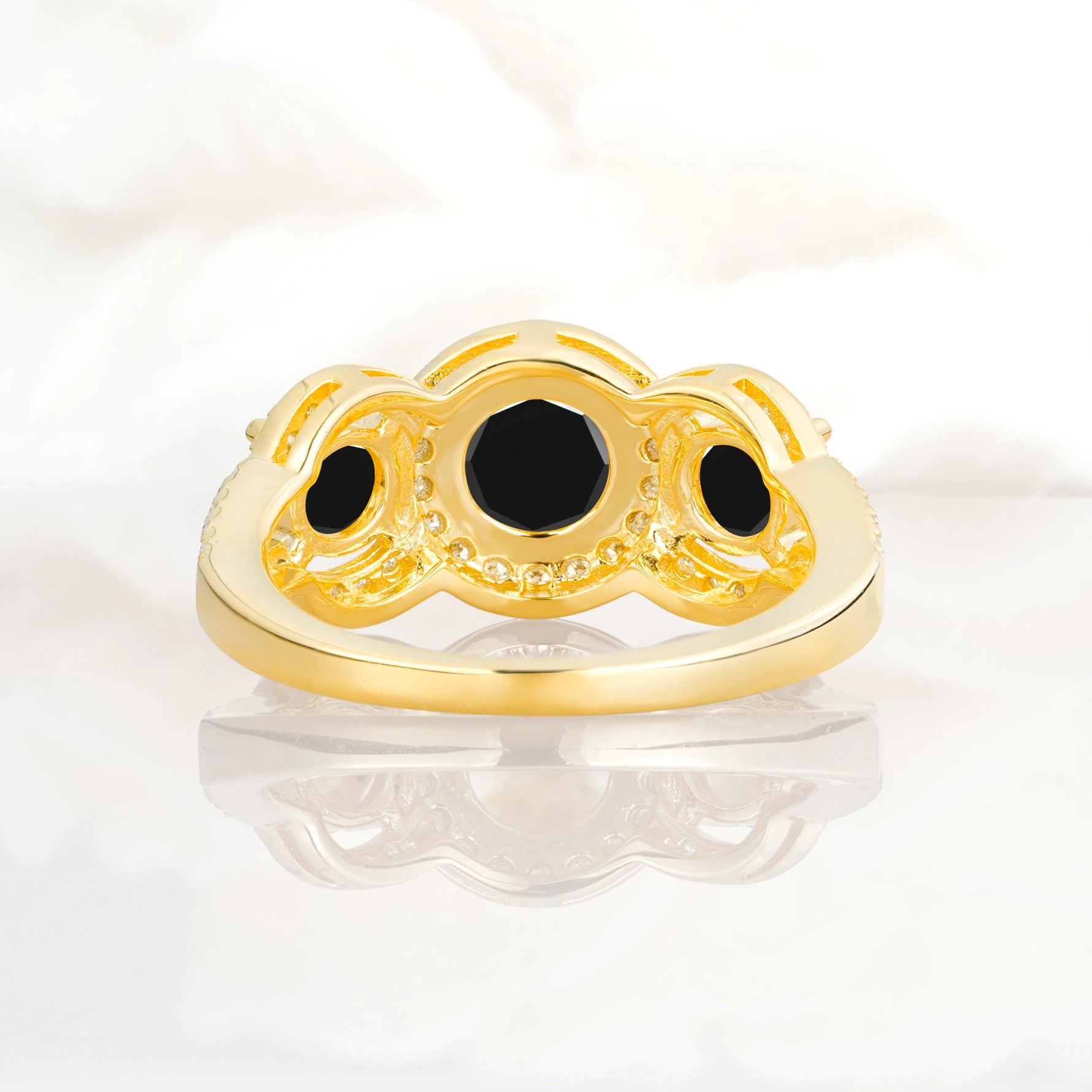 Three Stone Pavé Round Cut Black Onyx Engagement Ring