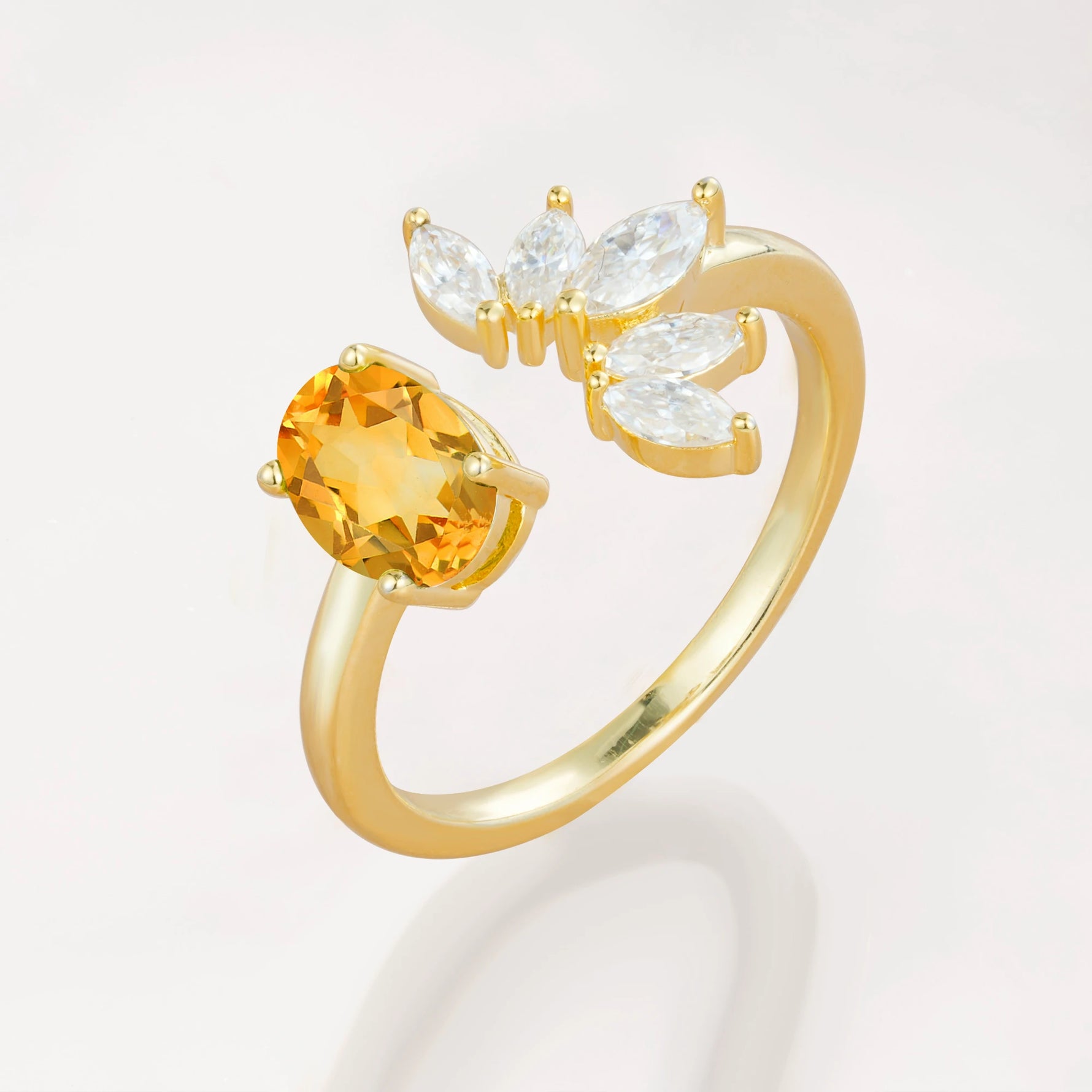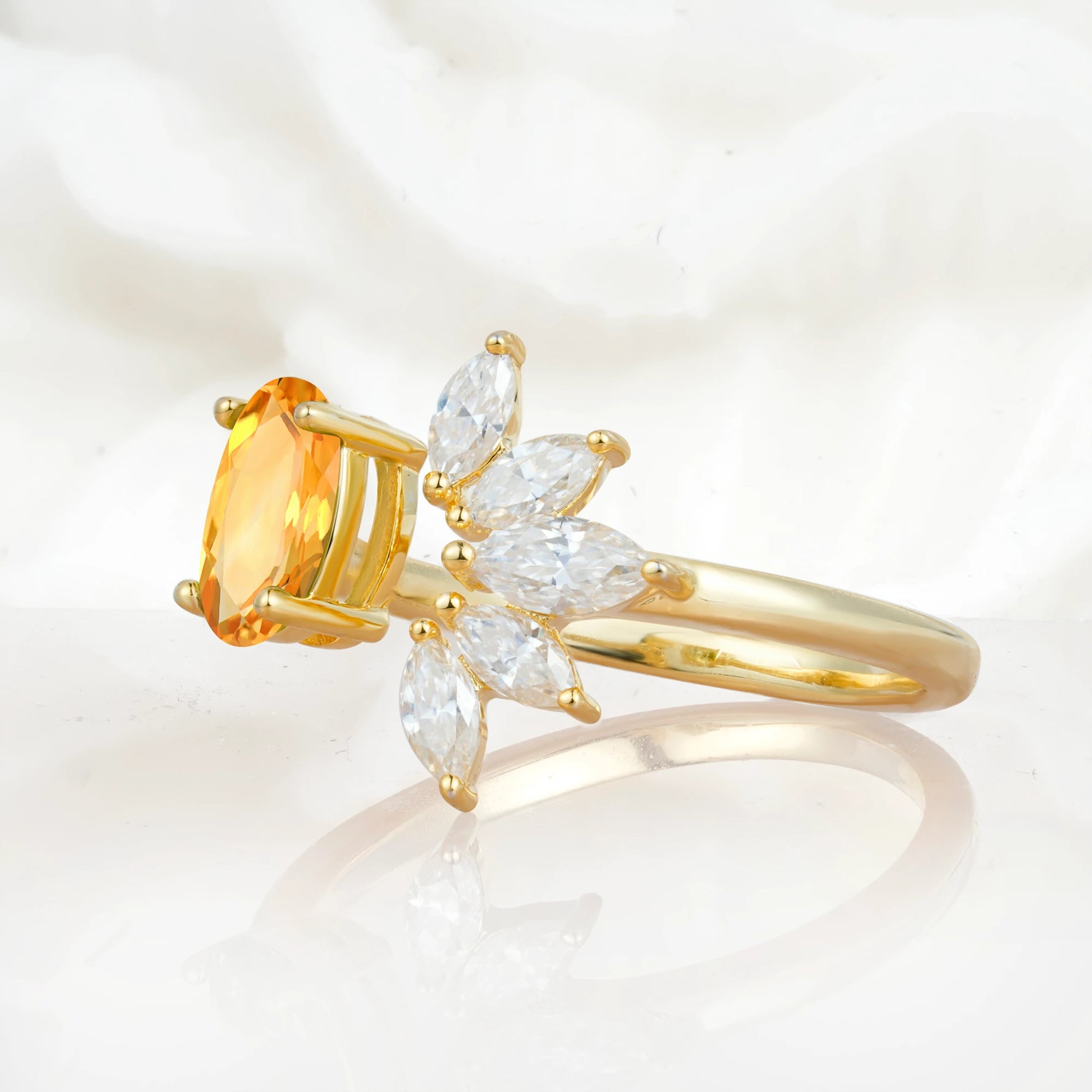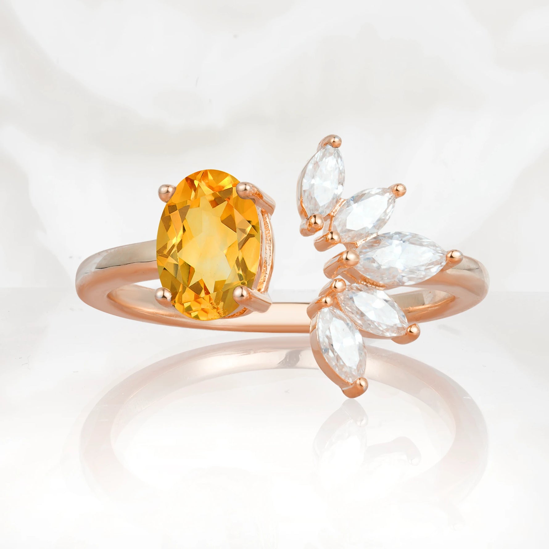 Unique Oval Citrine Engagement Ring with Marquise Side Stones