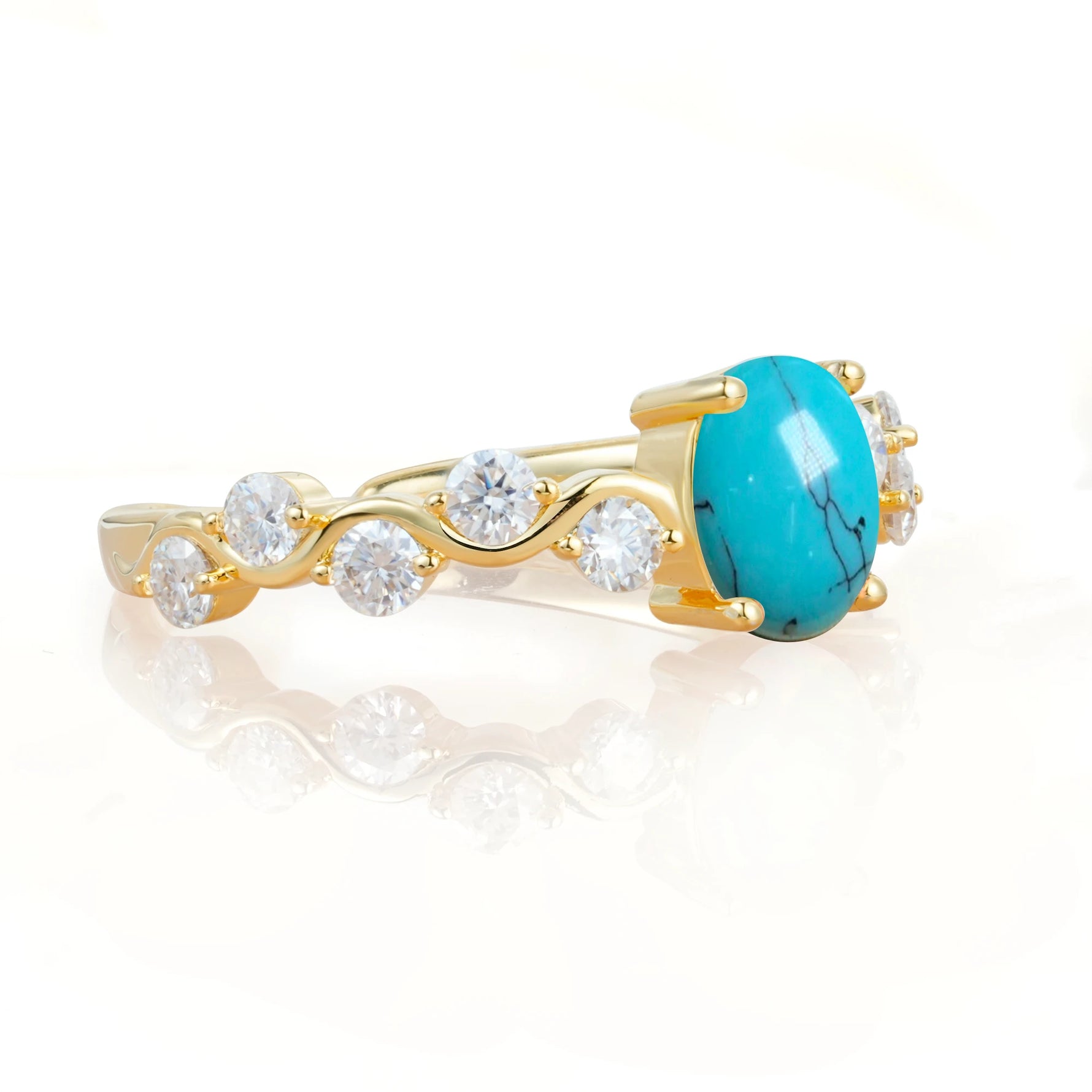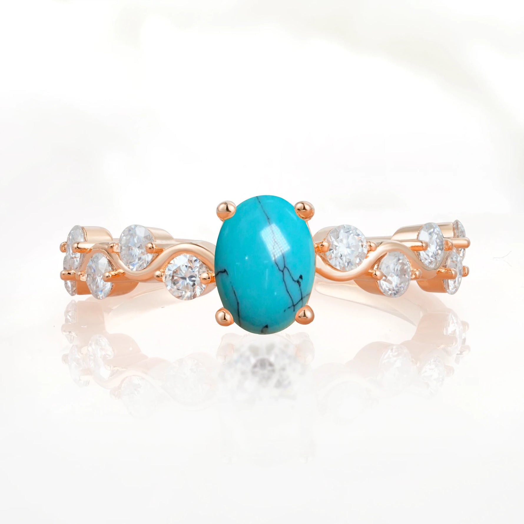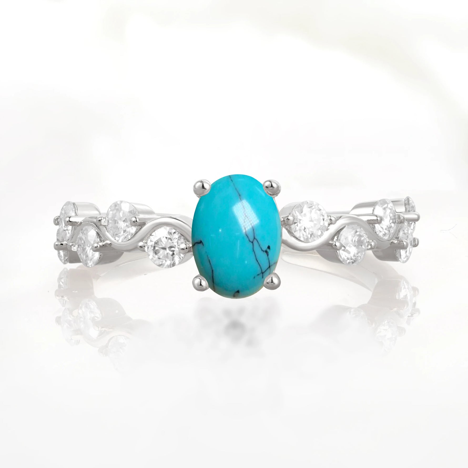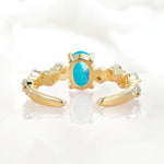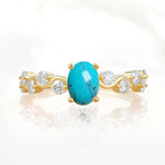 Unique Oval Turquoise Ring with Pave Set Stones
