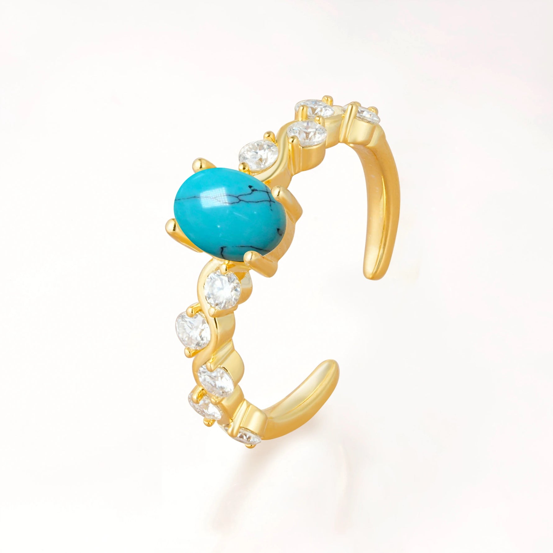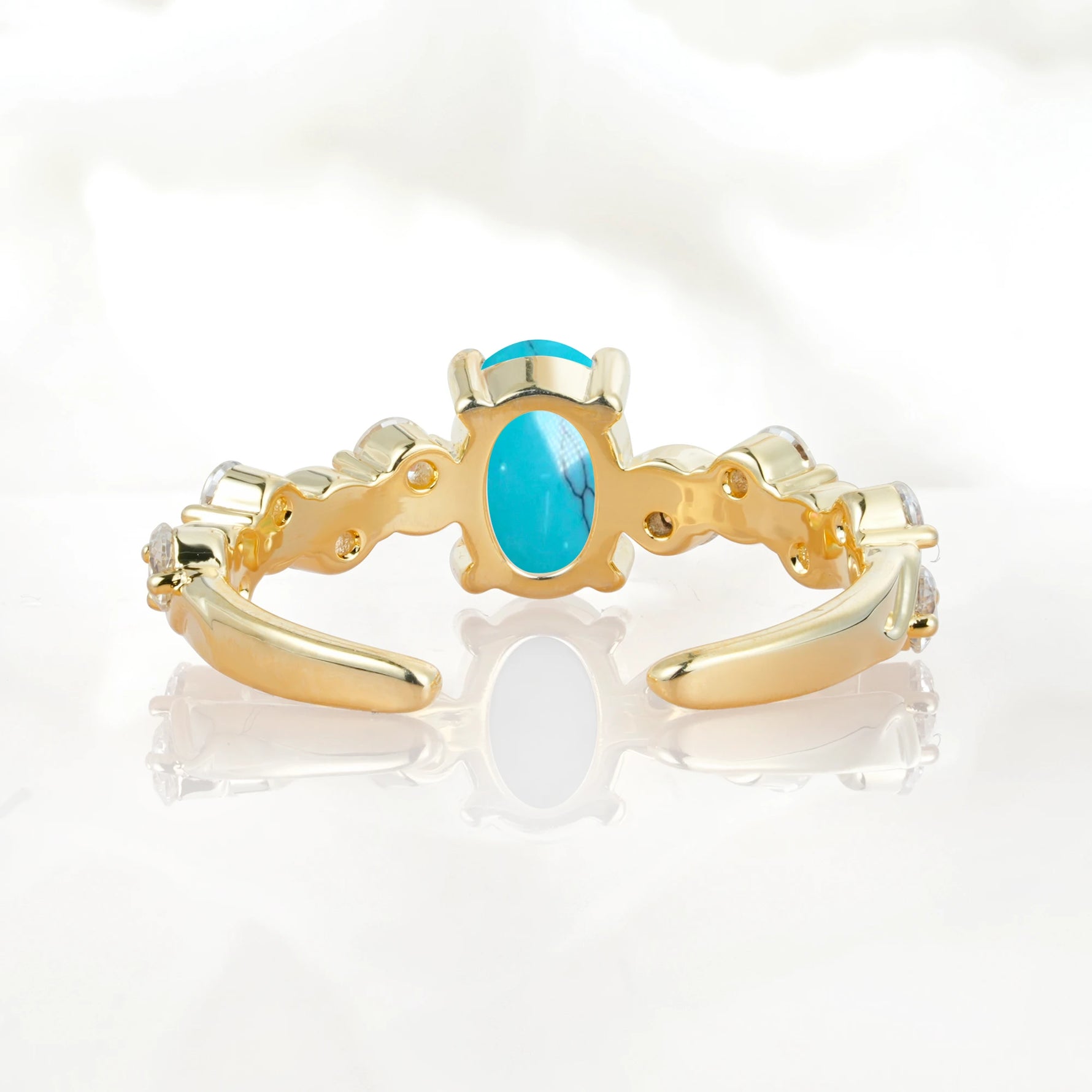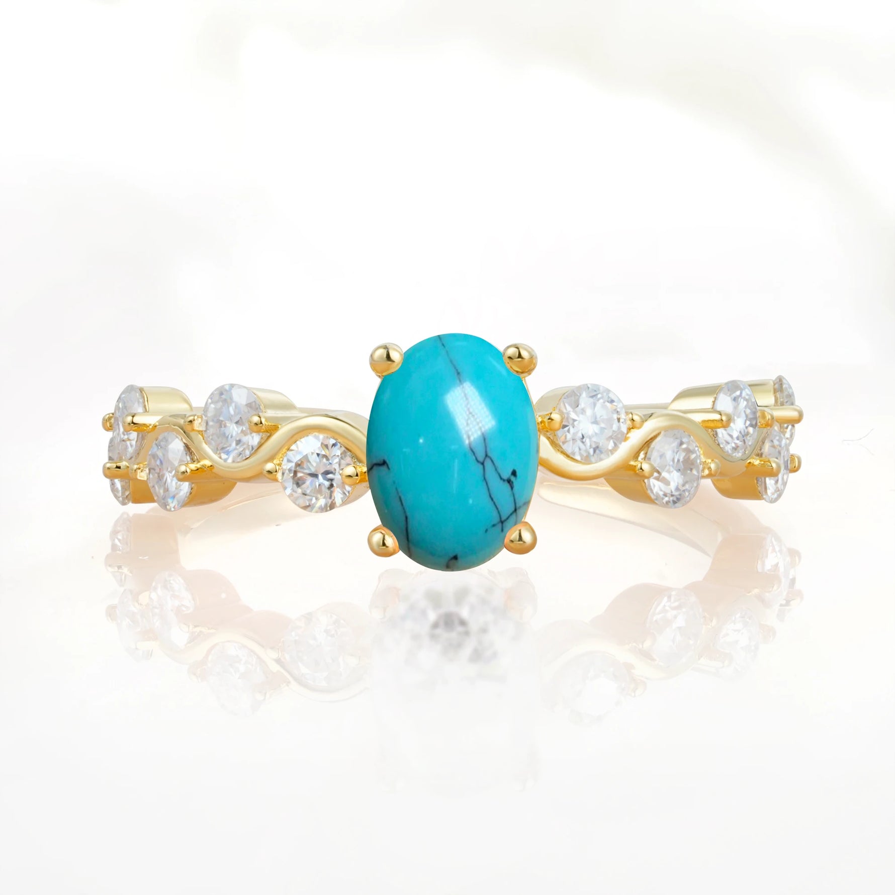 Unique Oval Turquoise Ring with Pave Set Stones