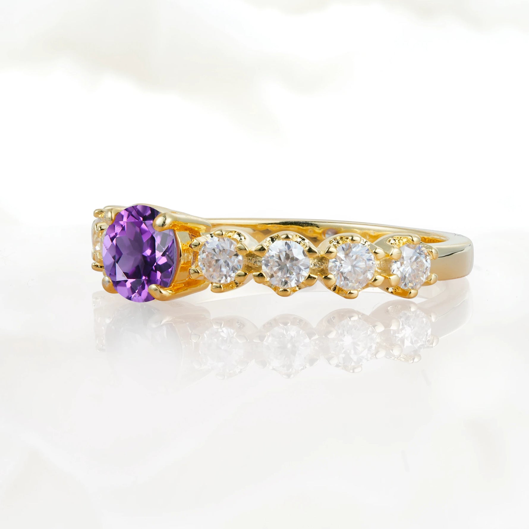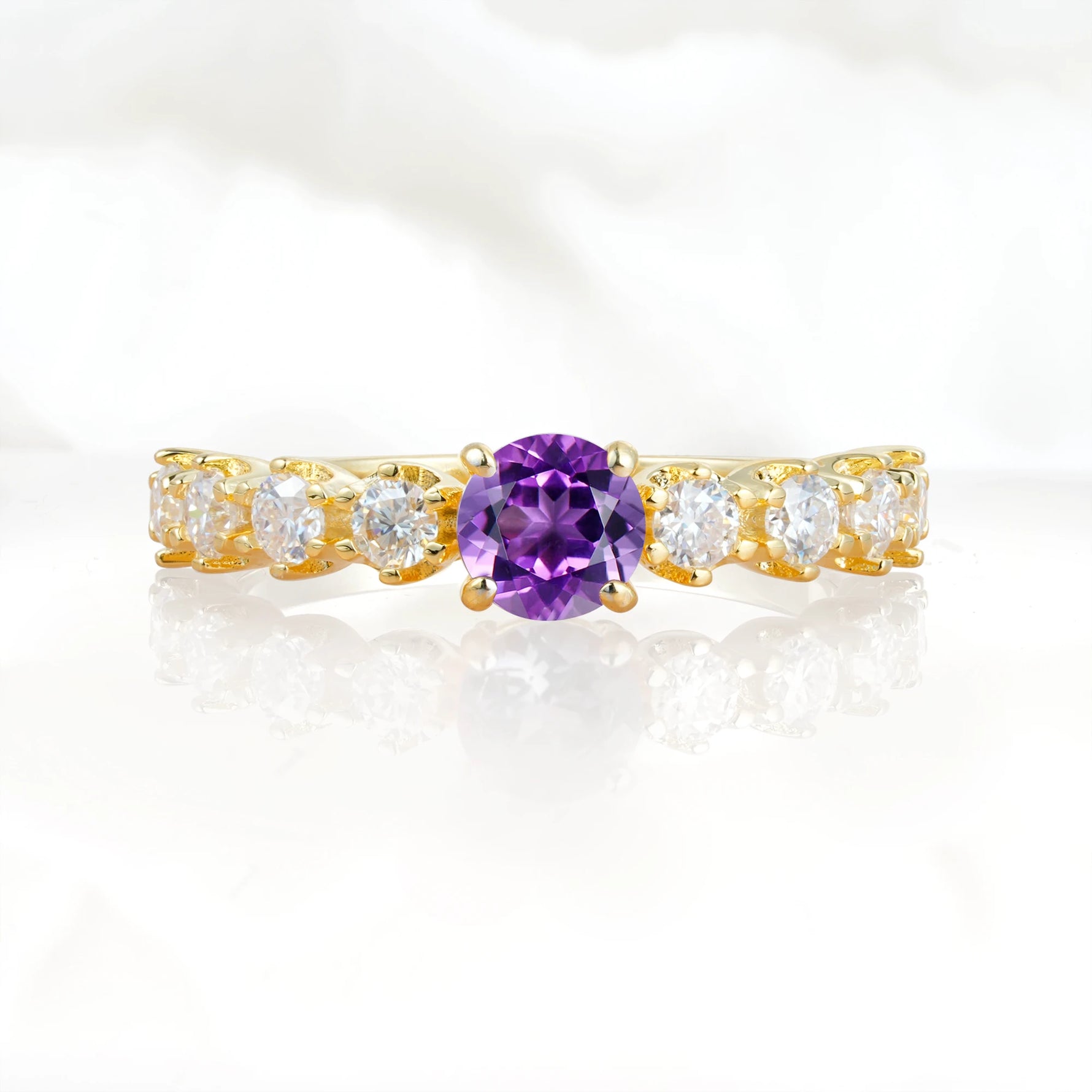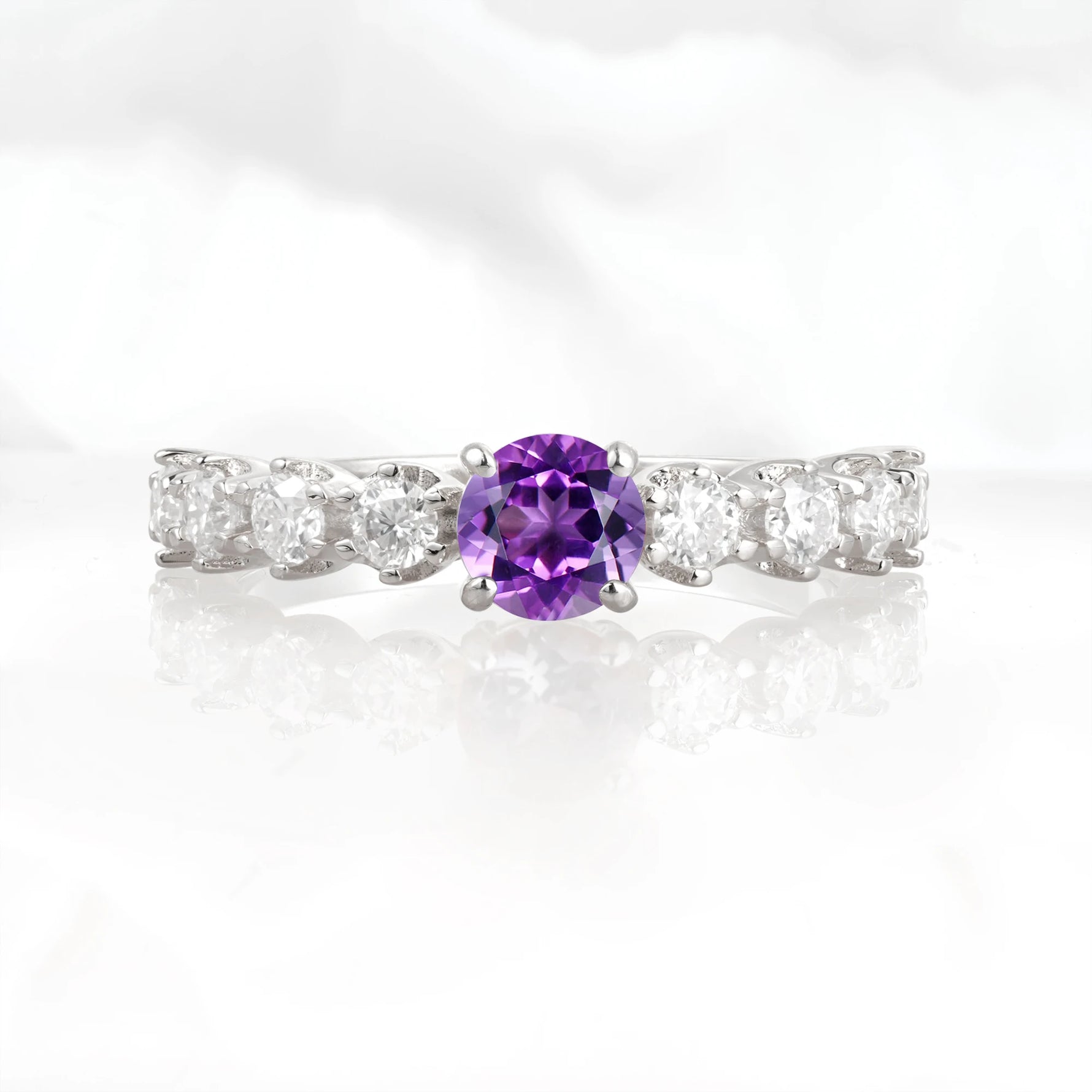 Classic Round-Shaped Amethyst Ring for Proposal and Anniversary Gifts