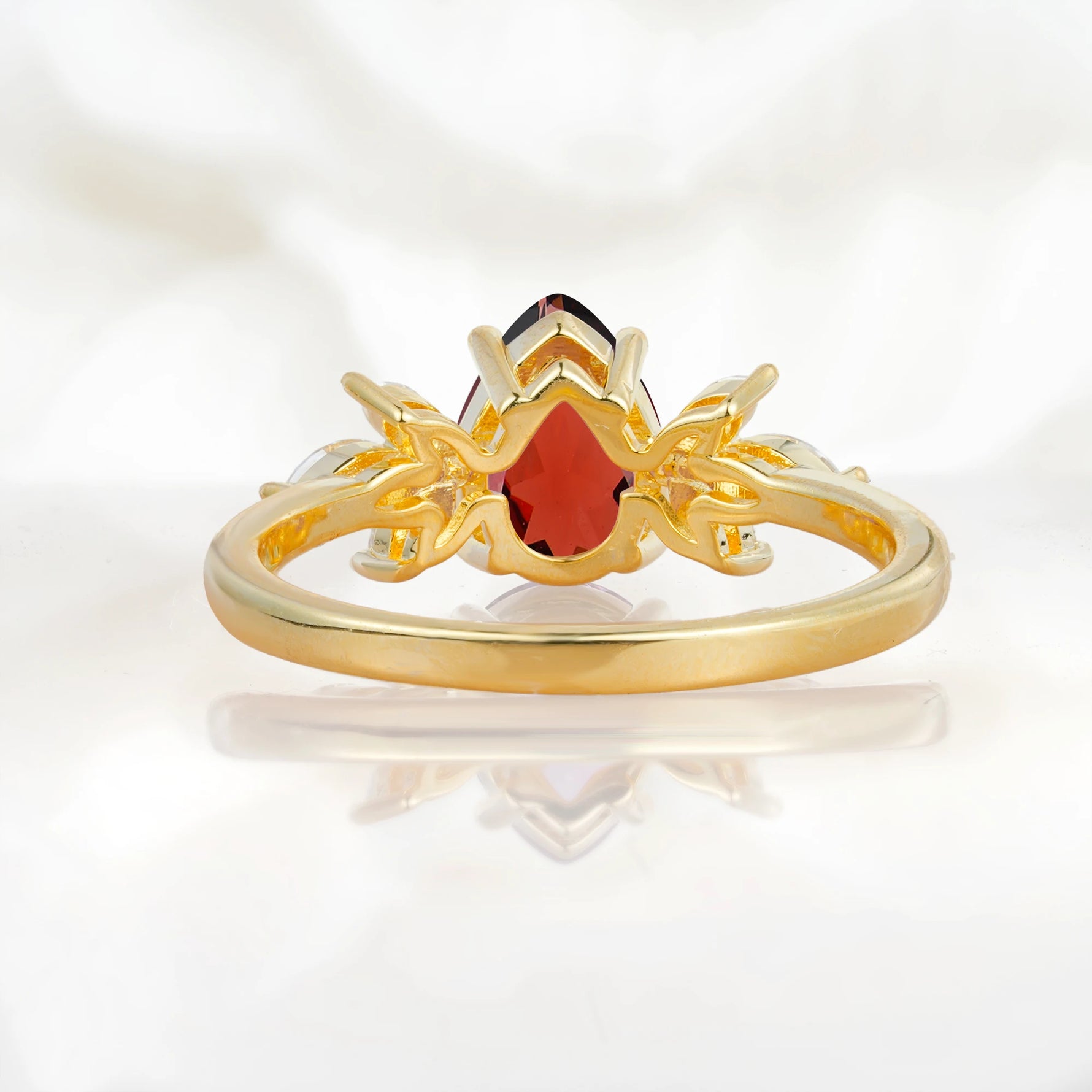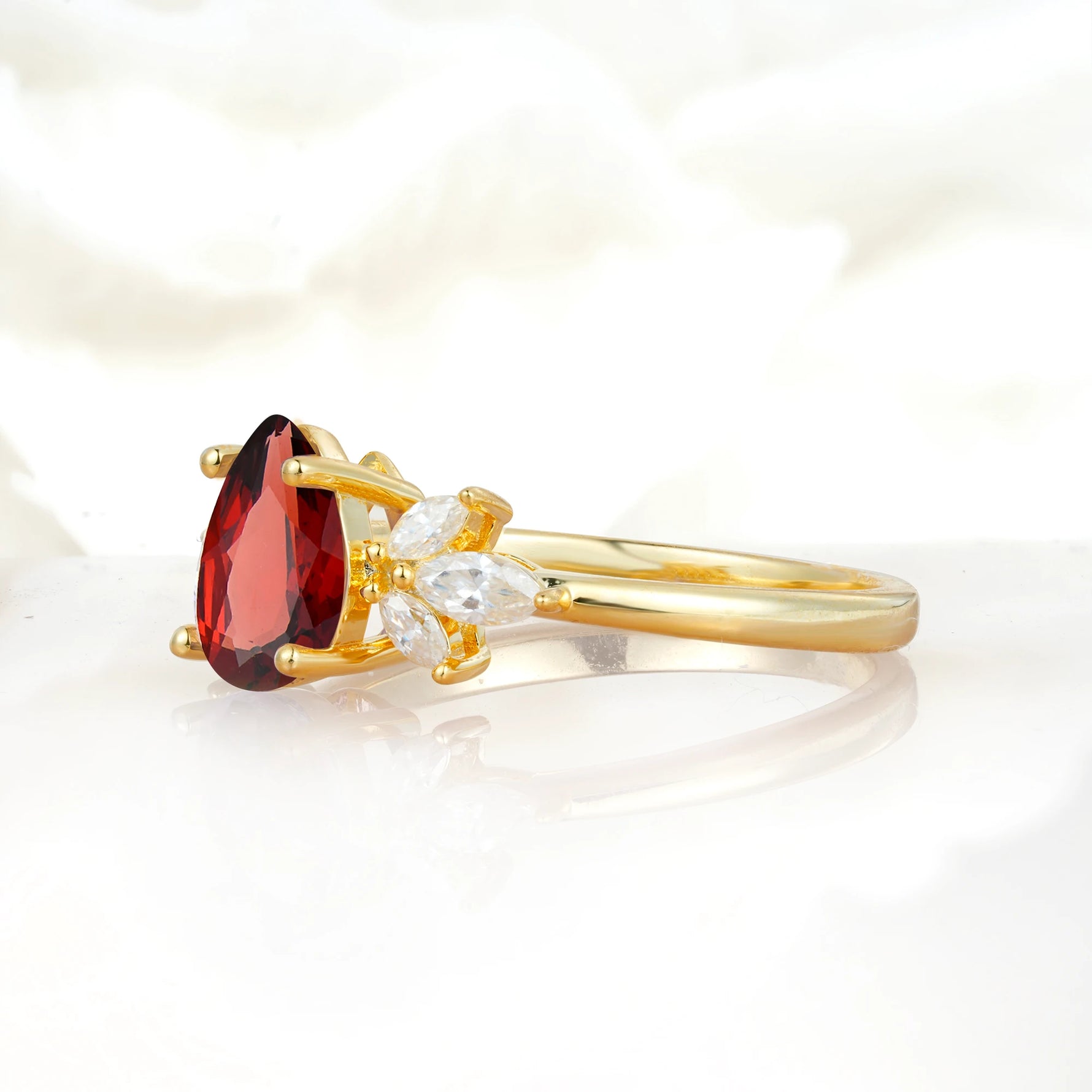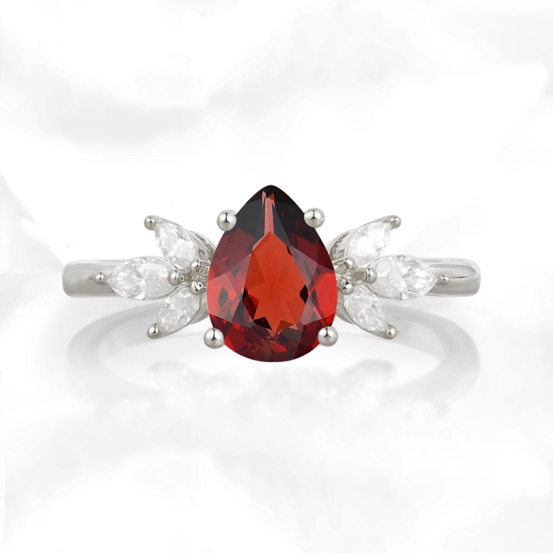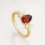 Elegant Pear-Shaped Garnet Engagement Ring with Floral Side Stones