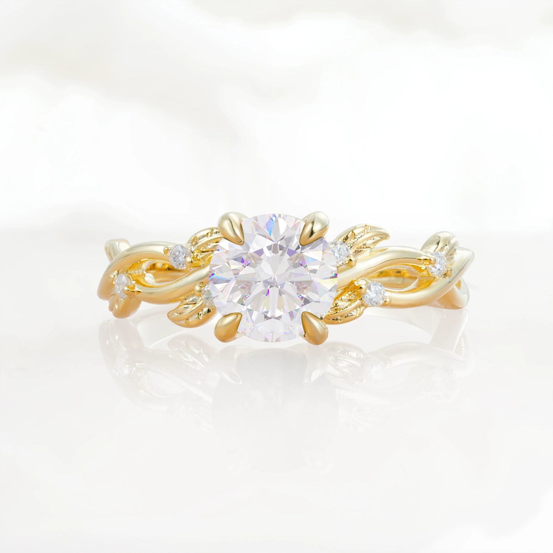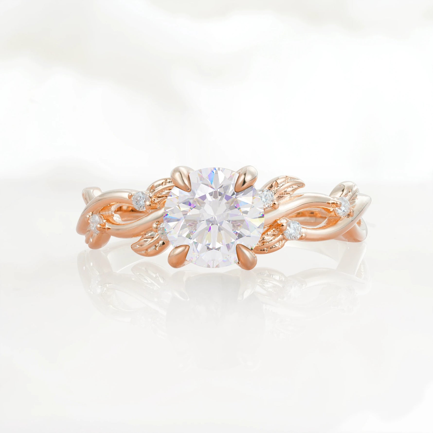 Nature Inspired Round-Shaped Moissanite Engagement Ring