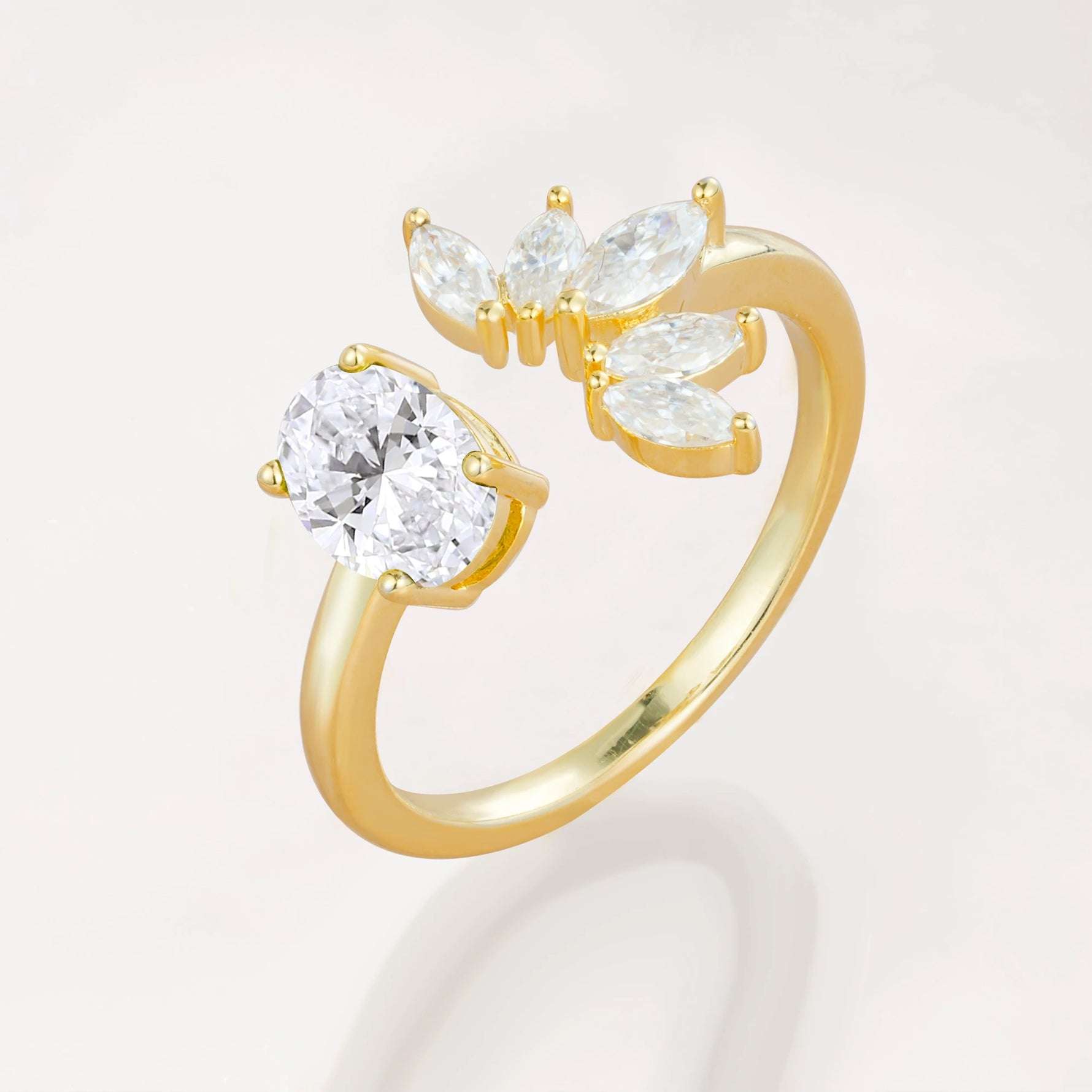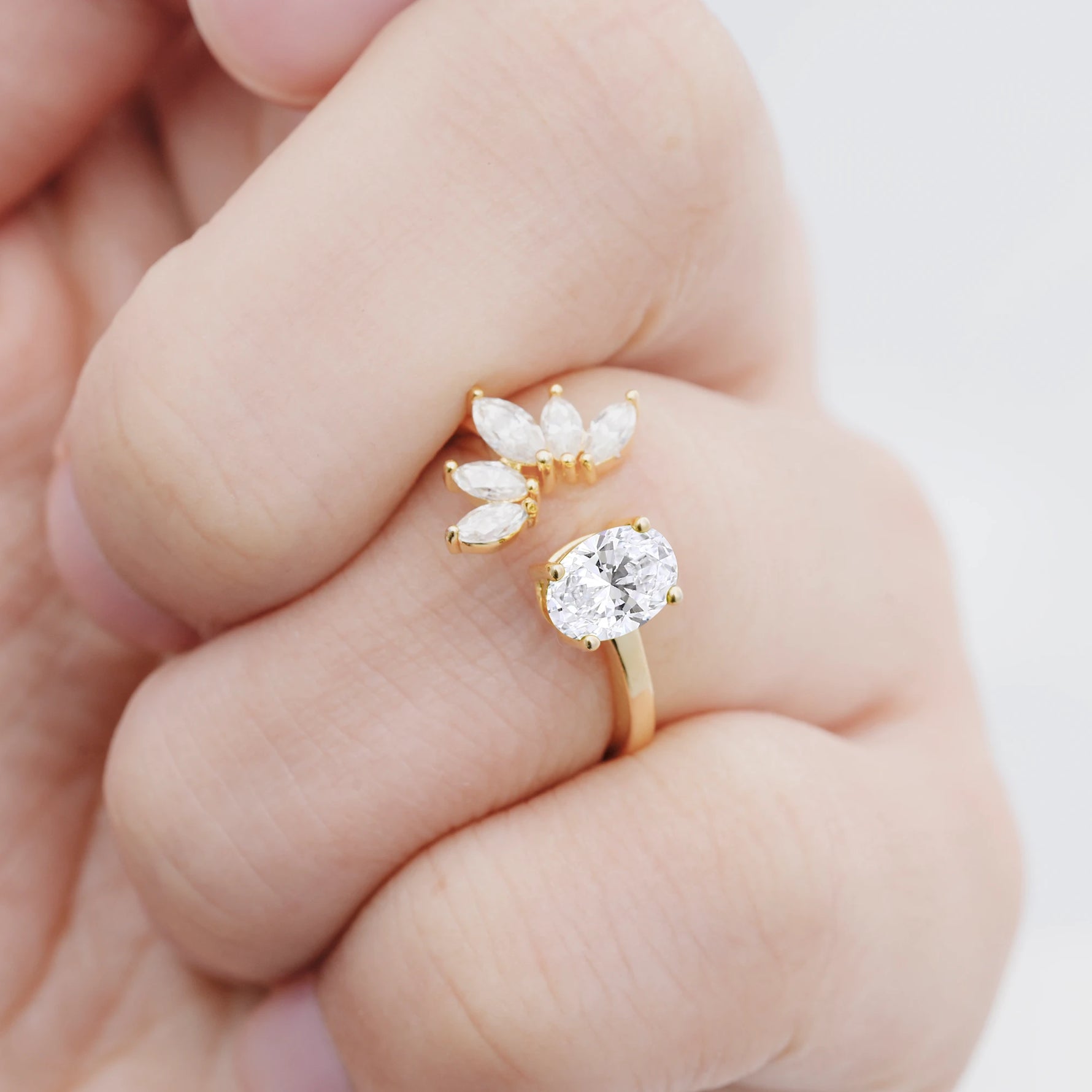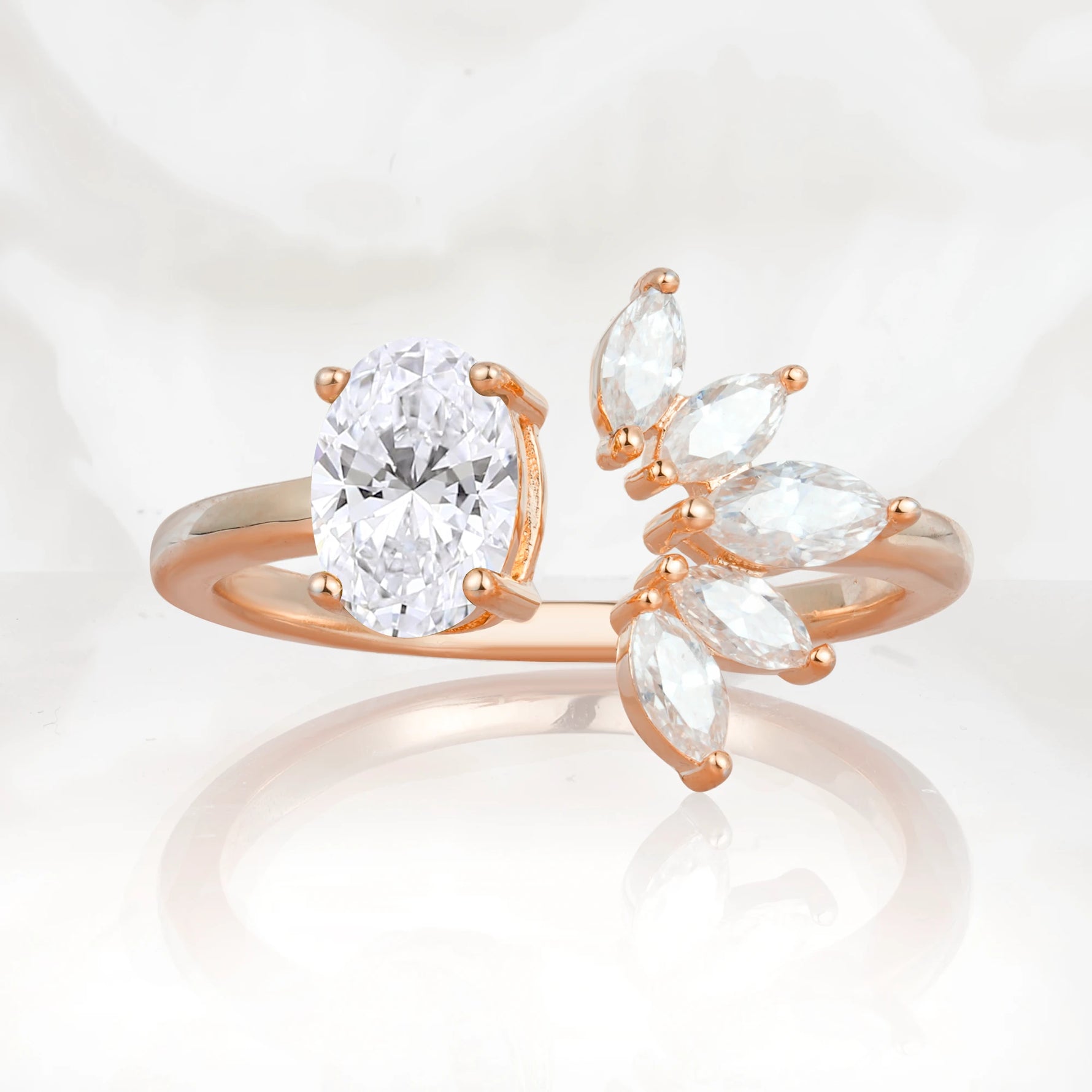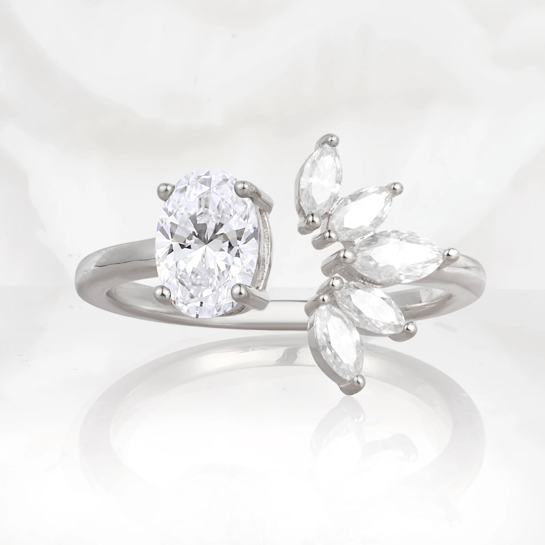 Unique Oval Lab Diamond Engagement Ring with Marquise Side Stones