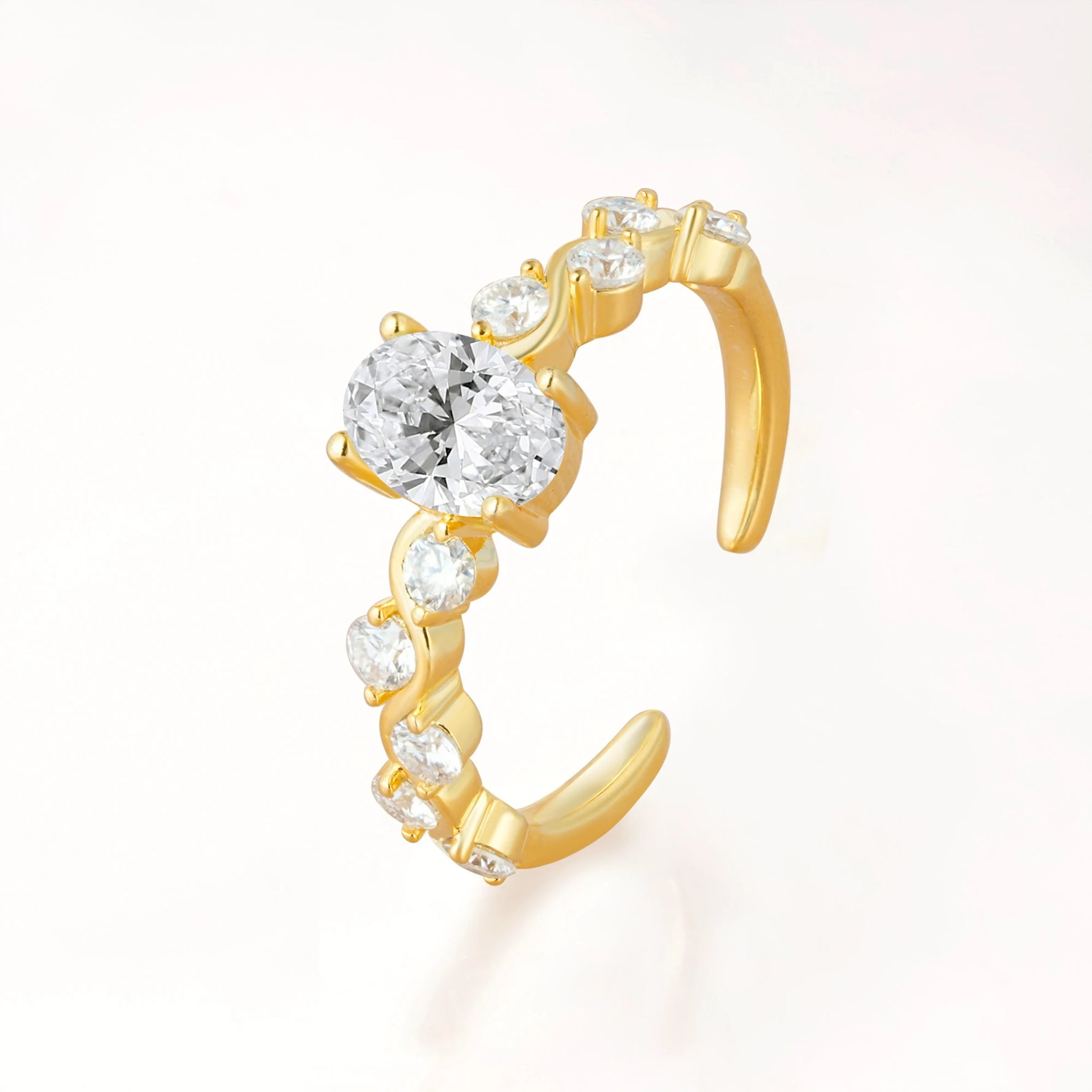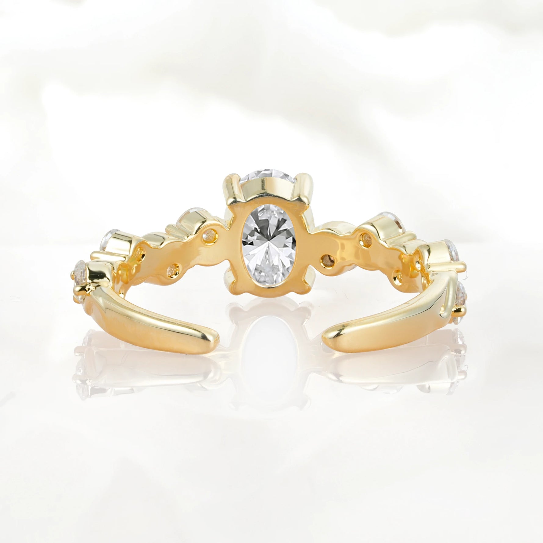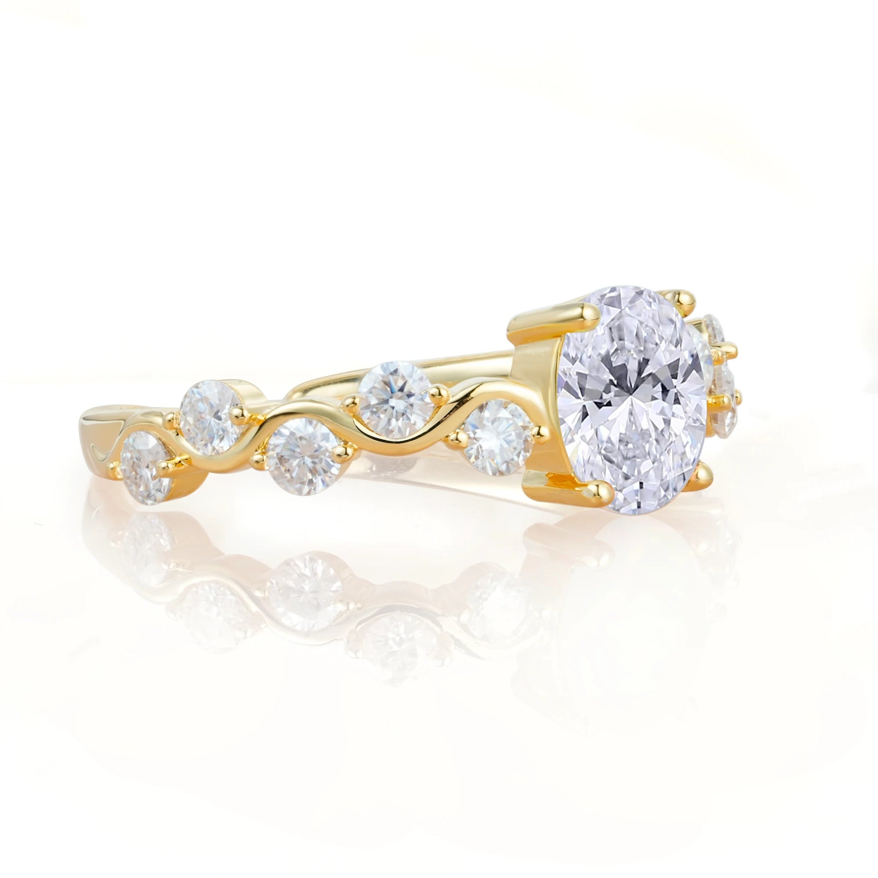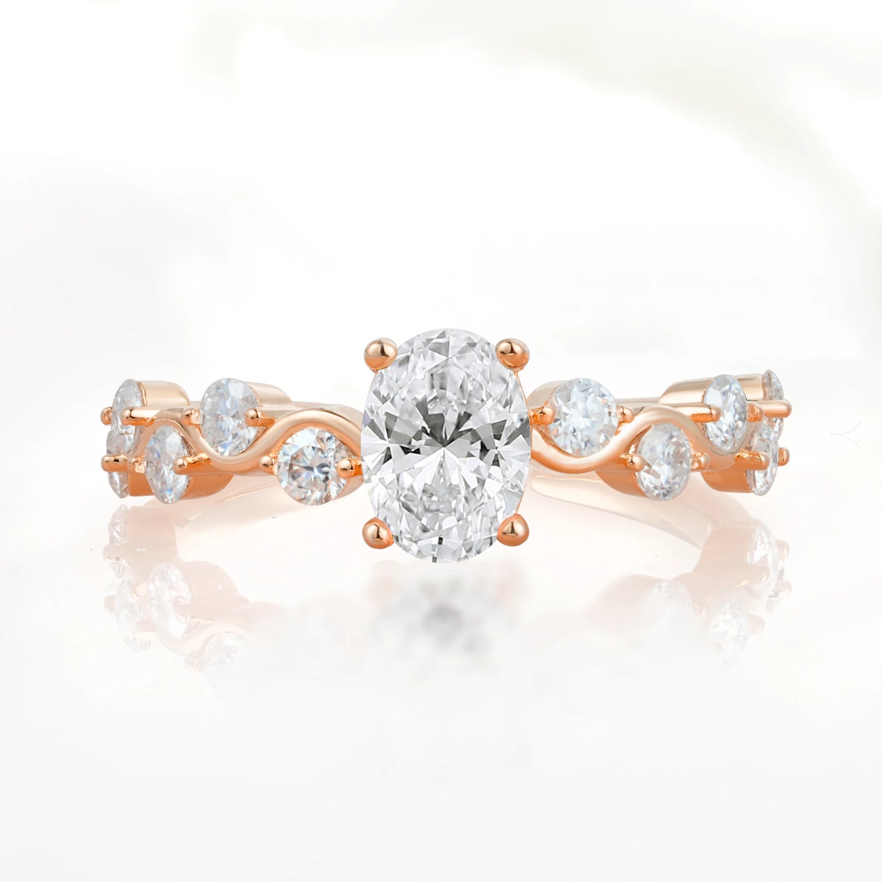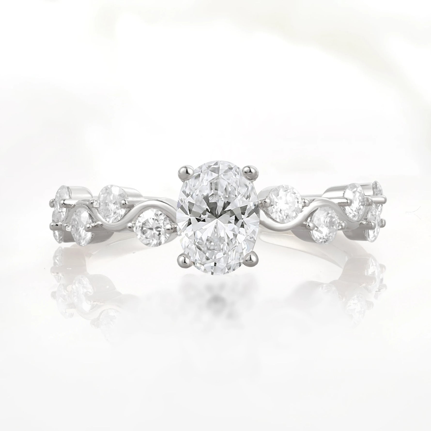 Unique Oval Lab Diamond Ring with Pave Set Stones