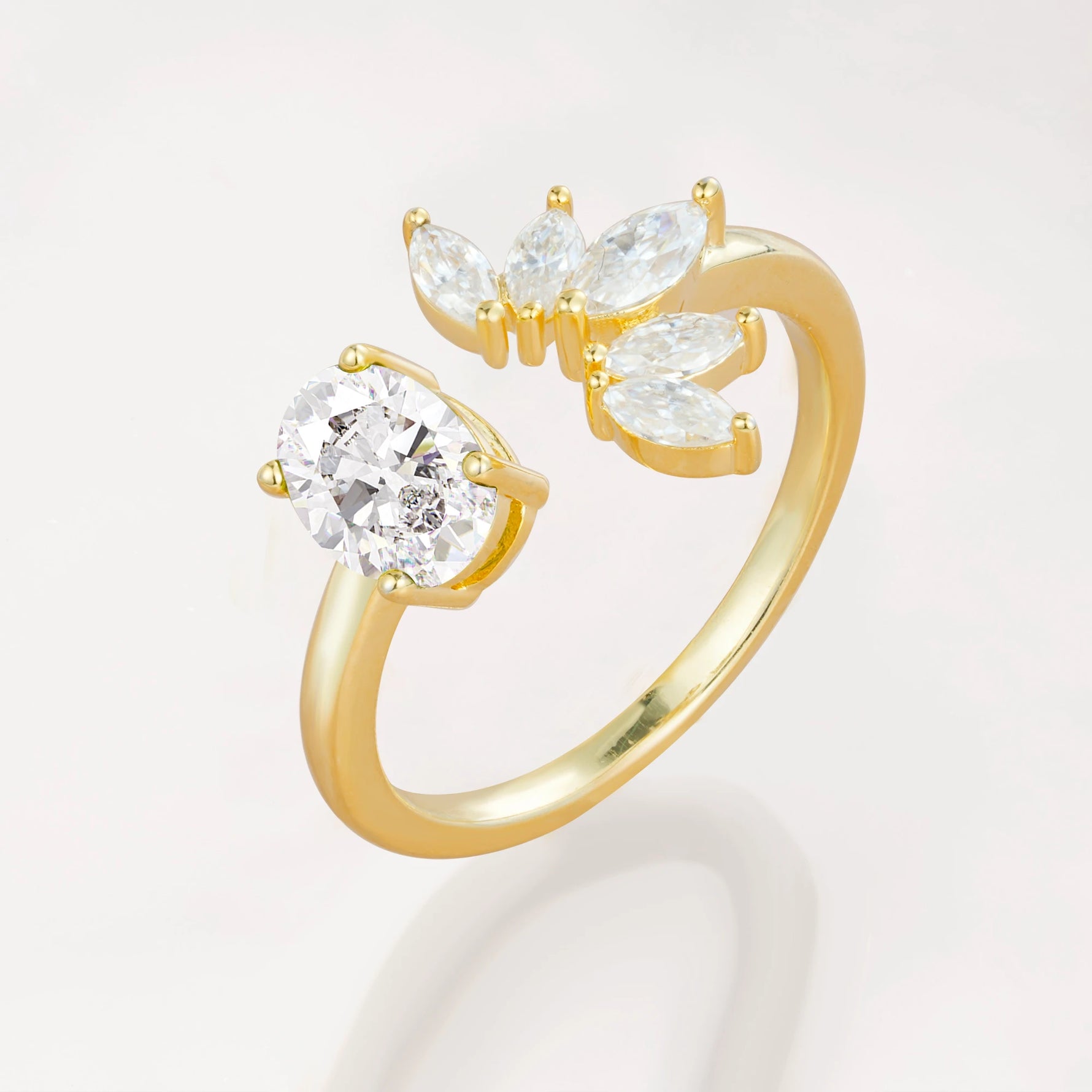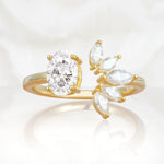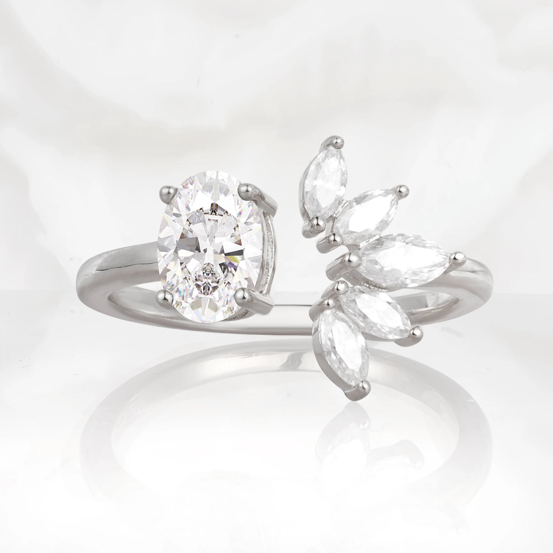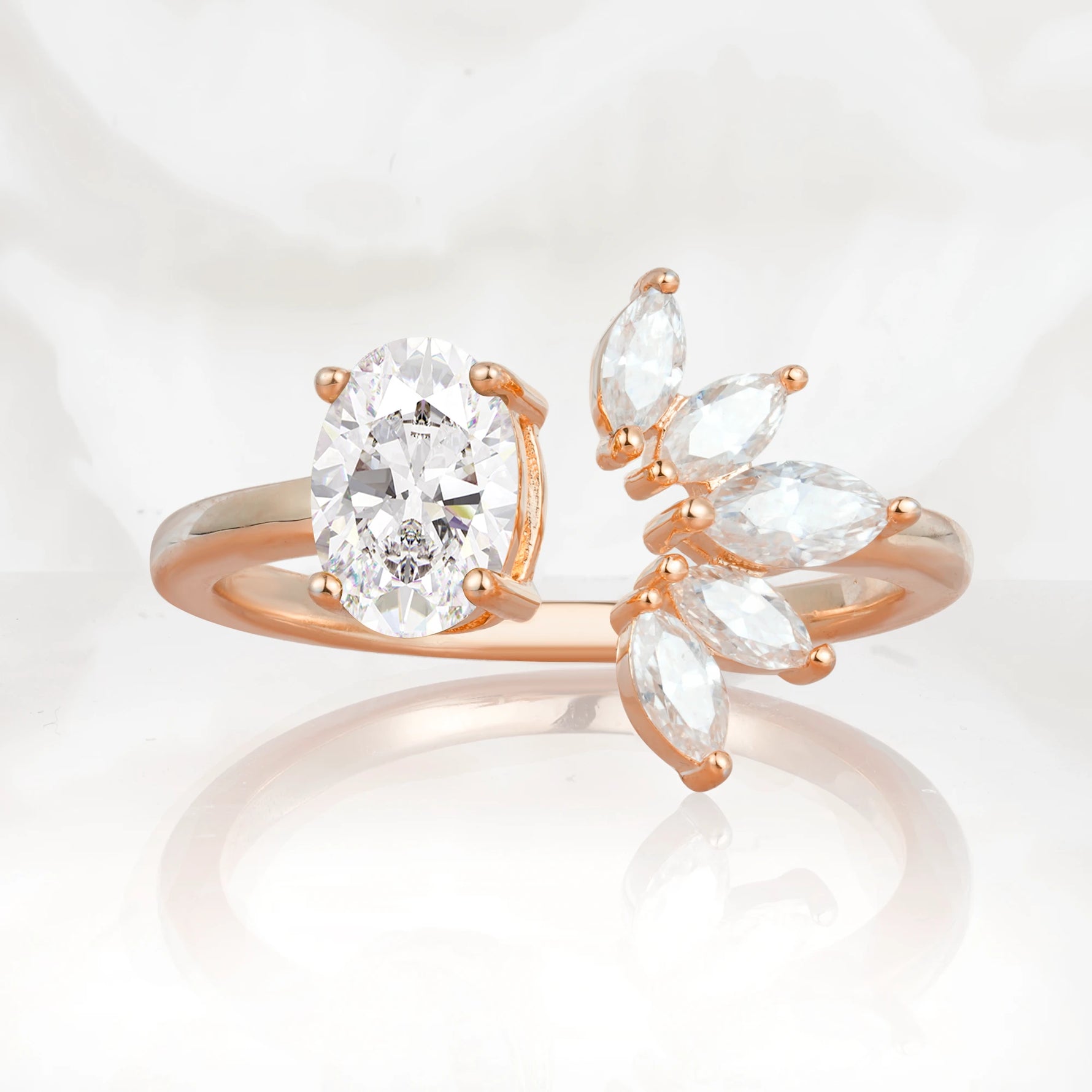 Unique Oval Moissanite Engagement Ring with Marquise Side Stones