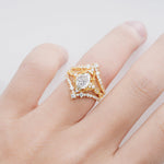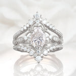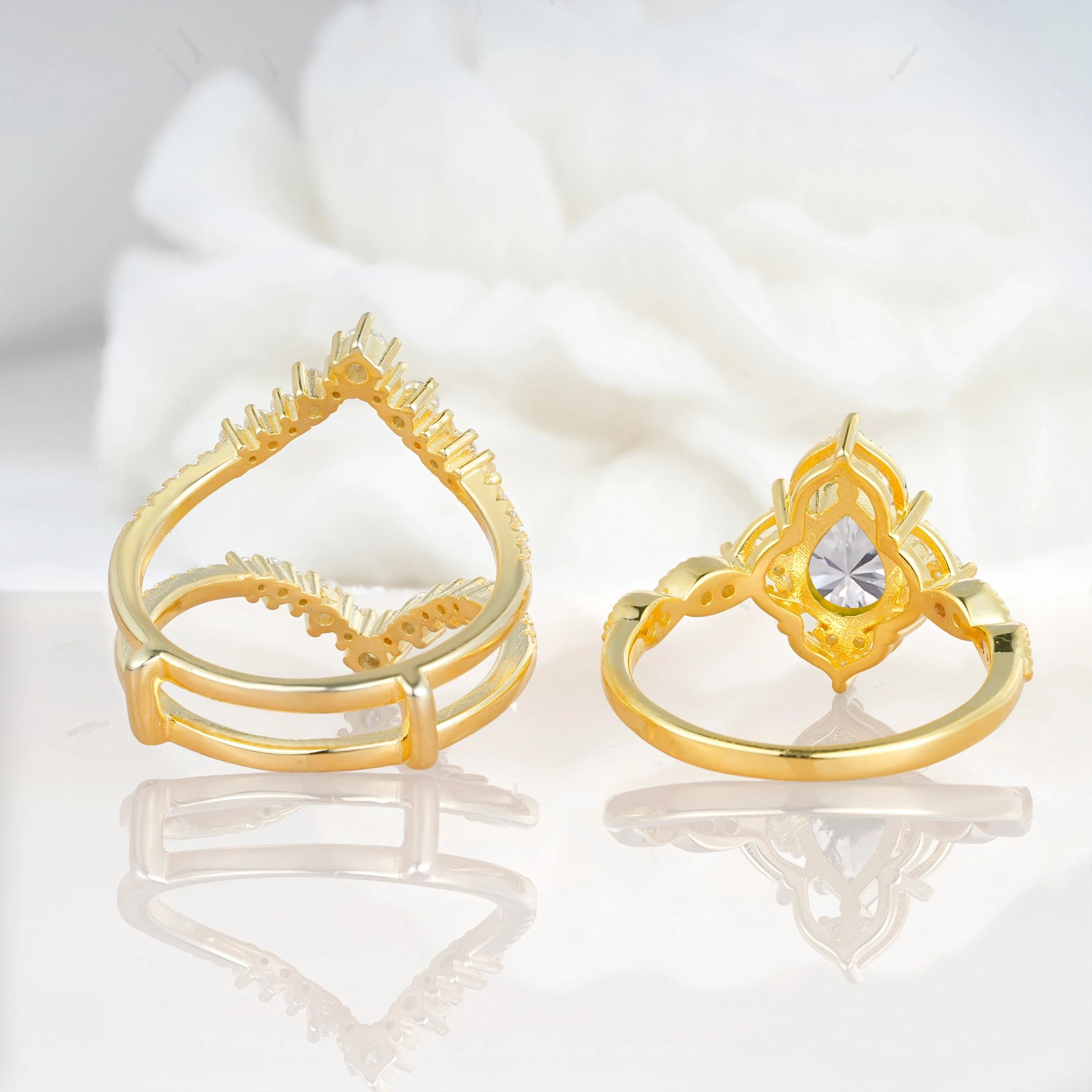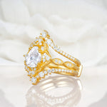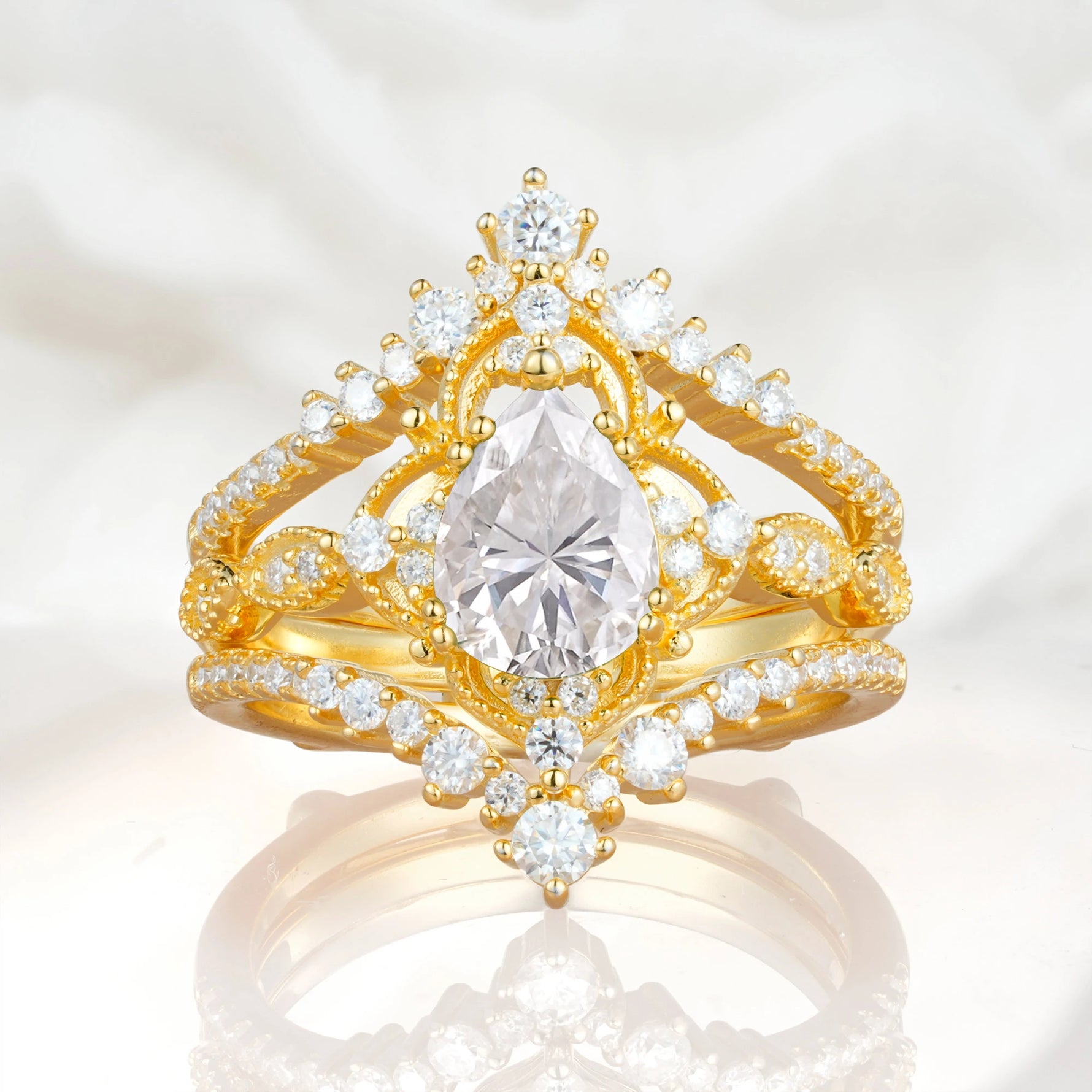 Vintage Gold Crown Moissanite Engagement Ring Set with Pear Cut